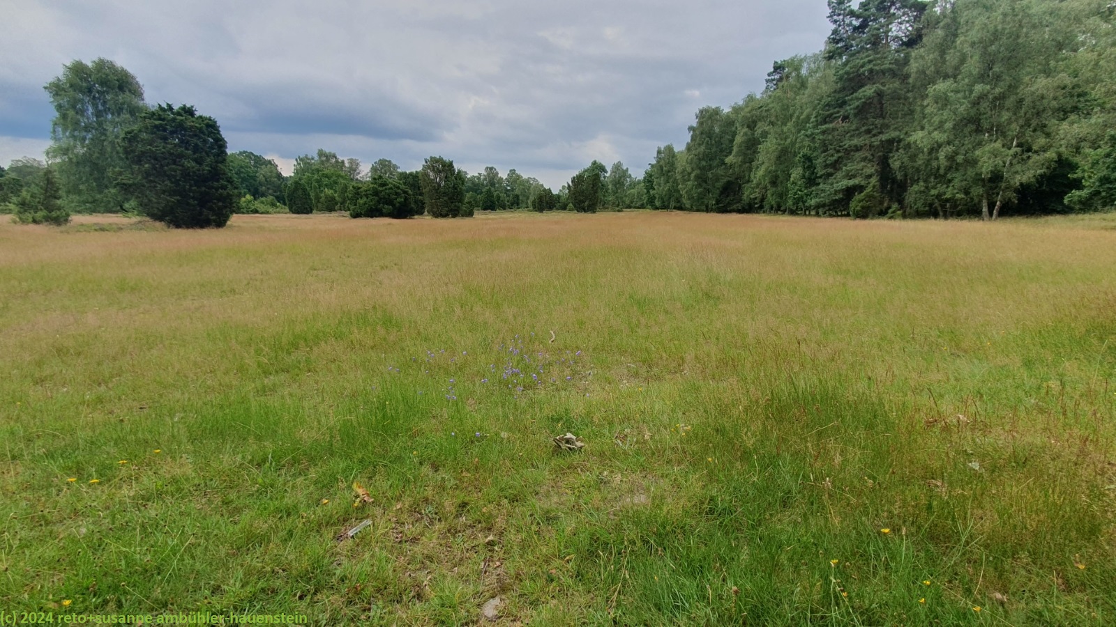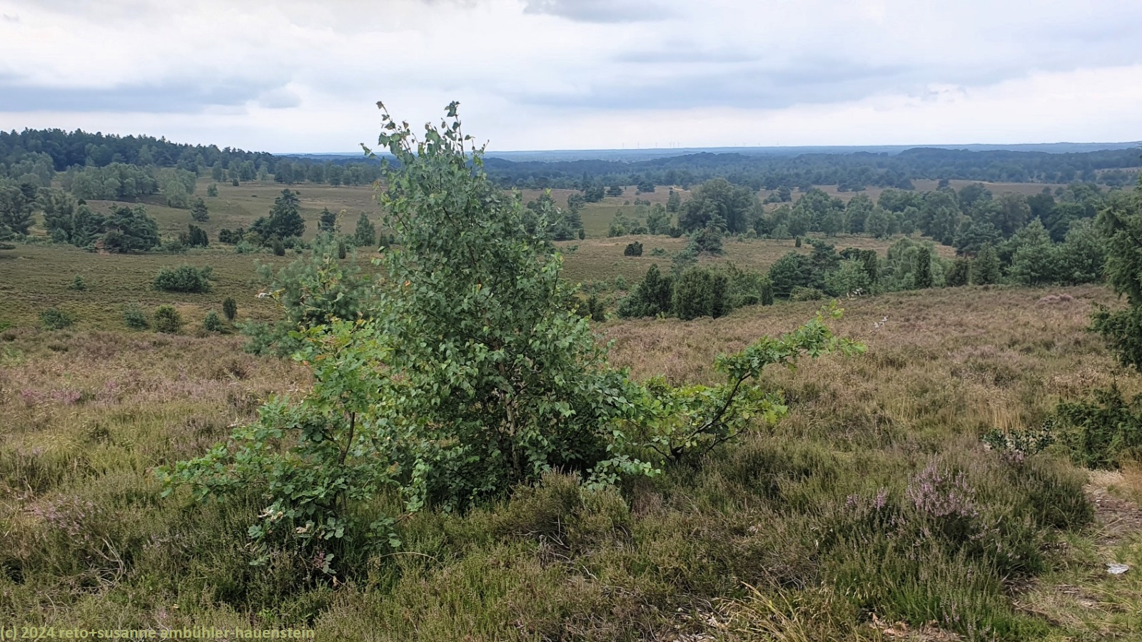 als wir um 08:30 uhr aufstehen, ist der himmel noch bewölkt, doch schon während wir frühstücken, wird es sonnig. wir fahren nach oberhaverbeck, wo wir erst durch den ort mit zahlreichen, historischen fachwerkbauten spazieren und dann den weg richtung wilseder berg unter die füsse nehmen. vom 169.2 meter hohen "berg" haben wir eine tolle aussicht auf die lüneburger heide. nach dem sanften abstieg richtung wilsede essen wir auf einer sitzbank am dorfrand zu mittag. dabei fallen einige regentropfen. im historischen ort bewundern wir weitere fachwerkhäuser und geniessen im restaurant "milchhalle" kaffee und kuchen. anschliessend folgen wir dem wanderweg richtung "totengrund" und umrunden die senke. erst durch einen schönen wald und dann über die offene heide wandern wir zurück zum ausgangspunkt. bevor wir zum einkaufen nach schneverdingen fahren, gönnen wir uns in einem hübschen gartenrestaurant ein erfrischendes getränk. zurück auf dem campingplatz müssen wir im jogi nachtessen, denn es zieht gerade ein gewitter vorüber. den abend verbringt susanne mit lesen und ich am computer.