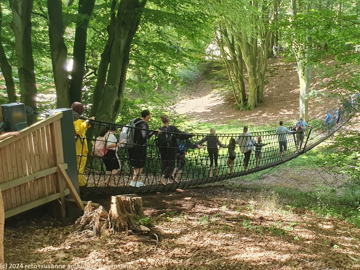 haengebruecke im barfusspark bei egestorf reto geht ueber haengebruecke im barfusspark bei egestorf