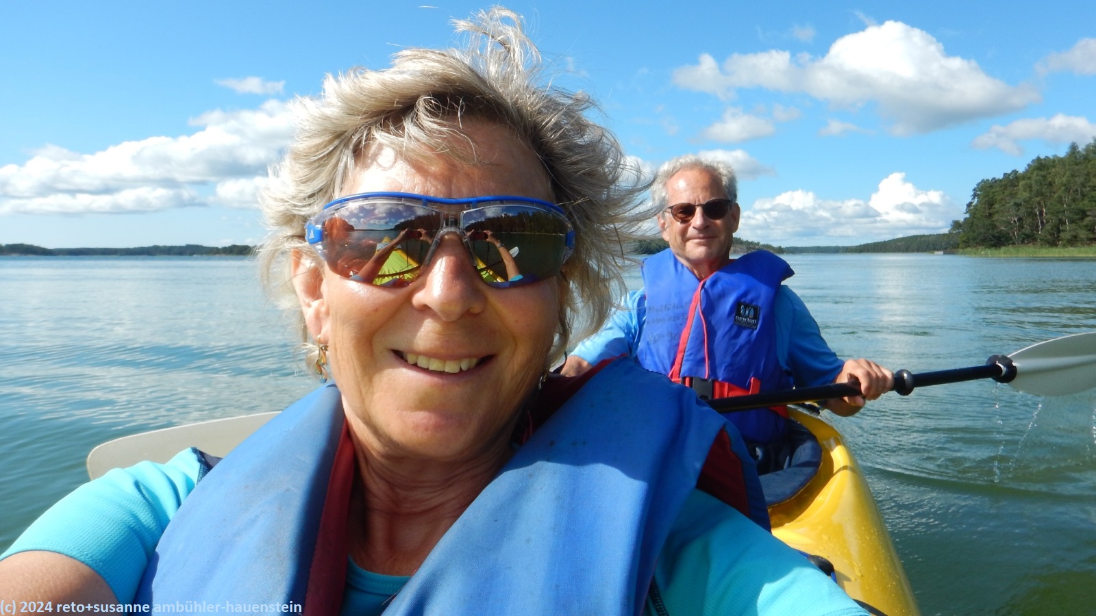 | im kajak unterwegs bei lilludden | susanne und reto unterwegs im doppelkajak im byfjärden |