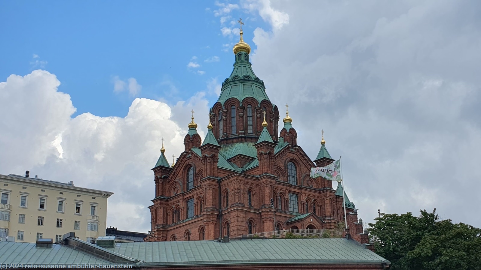 wir parkieren unseren jogi bei der autoverladestation, packen unsere sachen für heute nacht und fahren dann mit der nächsten s-bahn ins zentrum von helsinki. das wetter ist nun etwas sonniger und es ist richtig warm. wir gehen zur alten markthalle am hafen und essen zu mittag. anschliessend schlendern wir durch den markt und bewundern die auslagen. bei manchen ständen sind die beeren und das gemüse kunstvoll arrangiert. im cafe an der hauptstrasse geniessen wir kaffee und kuchen. danach machen wir beim restaurant la famiglia eine reservation für 18:30 uhr. wir schlendern weiter durch die stadt. es hat viele baustellen, auch die kuppel des doms ist eingerüstet. gegen 15:45 uhr beginnt es leicht zu regnen. wir setzen uns ins bistro beim bad am hafen und trinken einen tee. als wir wieder aufbrechen, beginnt es erst leicht und wenig später heftiger zu regnen. wir besuchen mehrere warenhäuser um trocken zu bleiben. beim hauptbahnhof drehen wir wieder um. der regen lässt bald nach und so schlendern wir kreuz und quer durch die strassen um die zeit vergehen zu lassen. kurz vor 18:30 uhr gehen wir zum restaurant la famiglia und geniessen ein köstliches abendessen. eine gute stunde später machen wir auf den weg zum bahnhof und fahren mit der s-bahn zurück nach pasila.