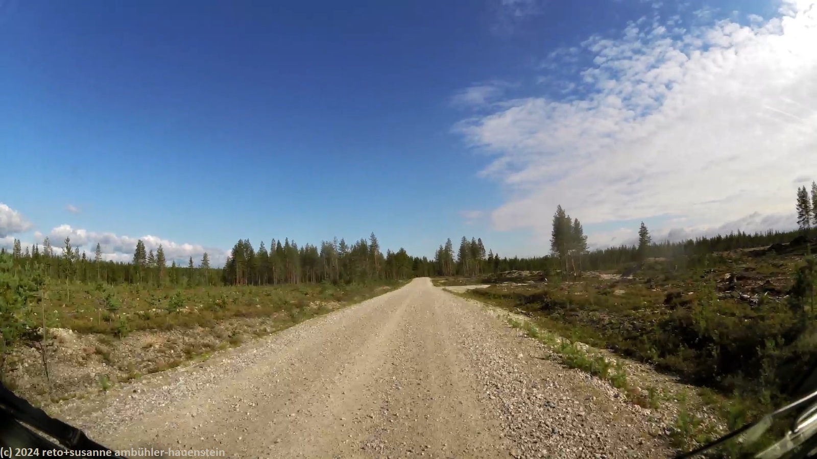 es ist schon 08:45 uhr, als wir endlich aus dem bett kommen. heute frühstücken wir im jogi, obwohl das wetter gleich ist wie gestern. kurz vor 11 uhr machen wir uns auf den weg richtung julma-ölkky. wieder geht es über eine unbefestigte strasse mit zahlreichen schlaglöcher. der hossa nationalpark schützt hier nur gerade den langgezogenen julma-ölkky und dessen ufer. der schmale bereich ist keine 600 meter breit. auf der fahrt zum ausgangspunkt unserer heutigen wanderung fahren wir an einer riesigen kiesgrube vorbei, die gerade noch ausserhalb des parkes liegt.