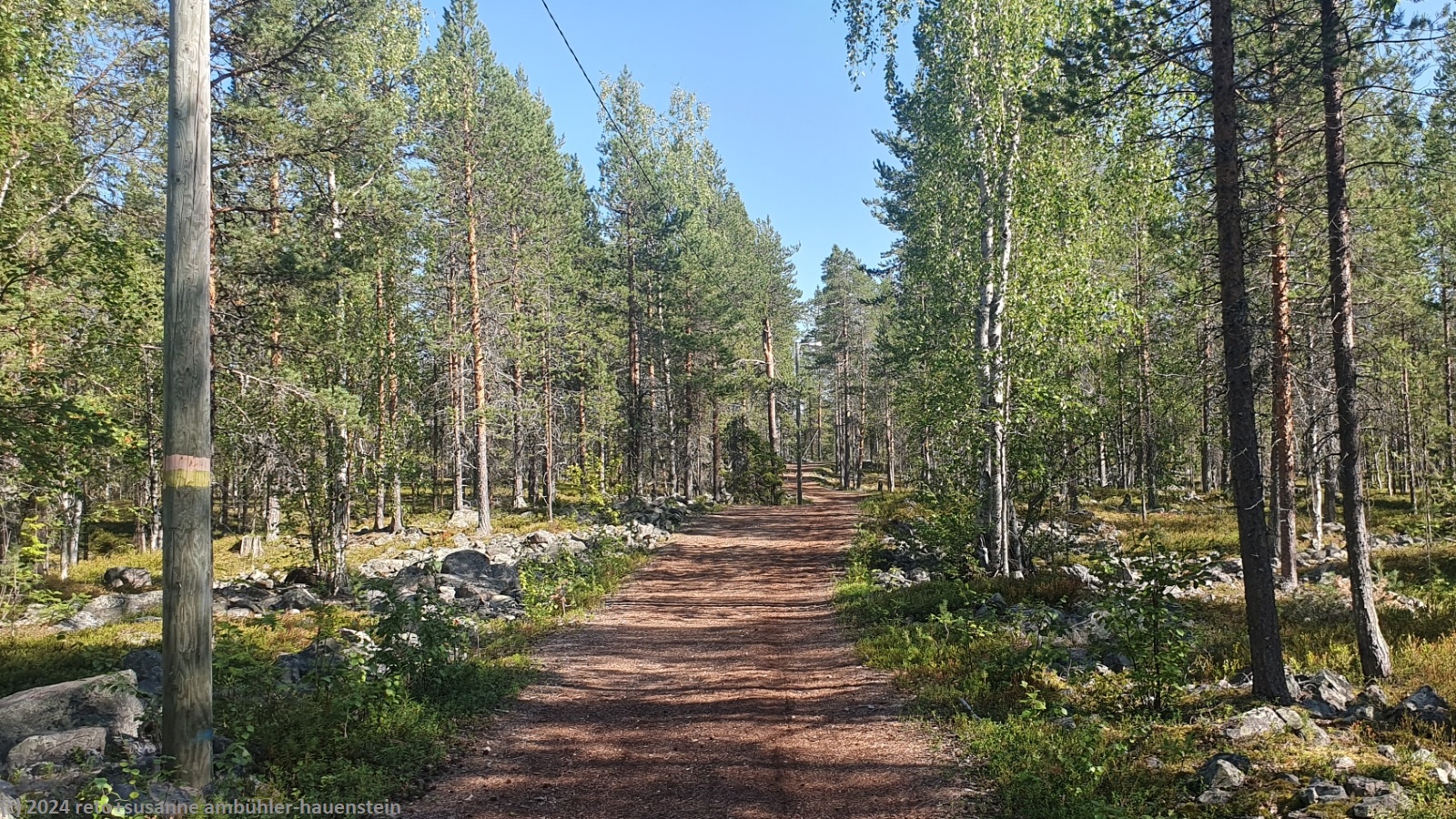 hier erreicht uns die nachricht, dass die akkus definitiv nicht mehr auffindbar seien. das ist sehr enttäuschend, hatte man uns doch versprochen, sie bis ende august aufzubewahren. (anmerkung: nach einigem hin und her vergütet die firma, welche für die gepäckabfertigung an den finnischen flughäfen zuständig ist, einen ordentlichen betrag an die unauffindbaren akkus, was wir als grosszügiges entgegenkommen betrachten.) schliesslichen nehmen wir den wanderweg richtung golfplatz unter die füsse. wir wandern auf einem angenehm weichen waldweg und geniessen den schatten. beim skilift draivi hat es eine überraschend grosse baustelle. hier entsteht ein sessellift. die talstation und die masten stehen bereits, die garage für die sessel ist noch im bau. wir setzen uns auf die terrasse des restaurants und trinken etwas. dabei haben wir einen tollen blick auf den hübsch angelegten golfplatz.