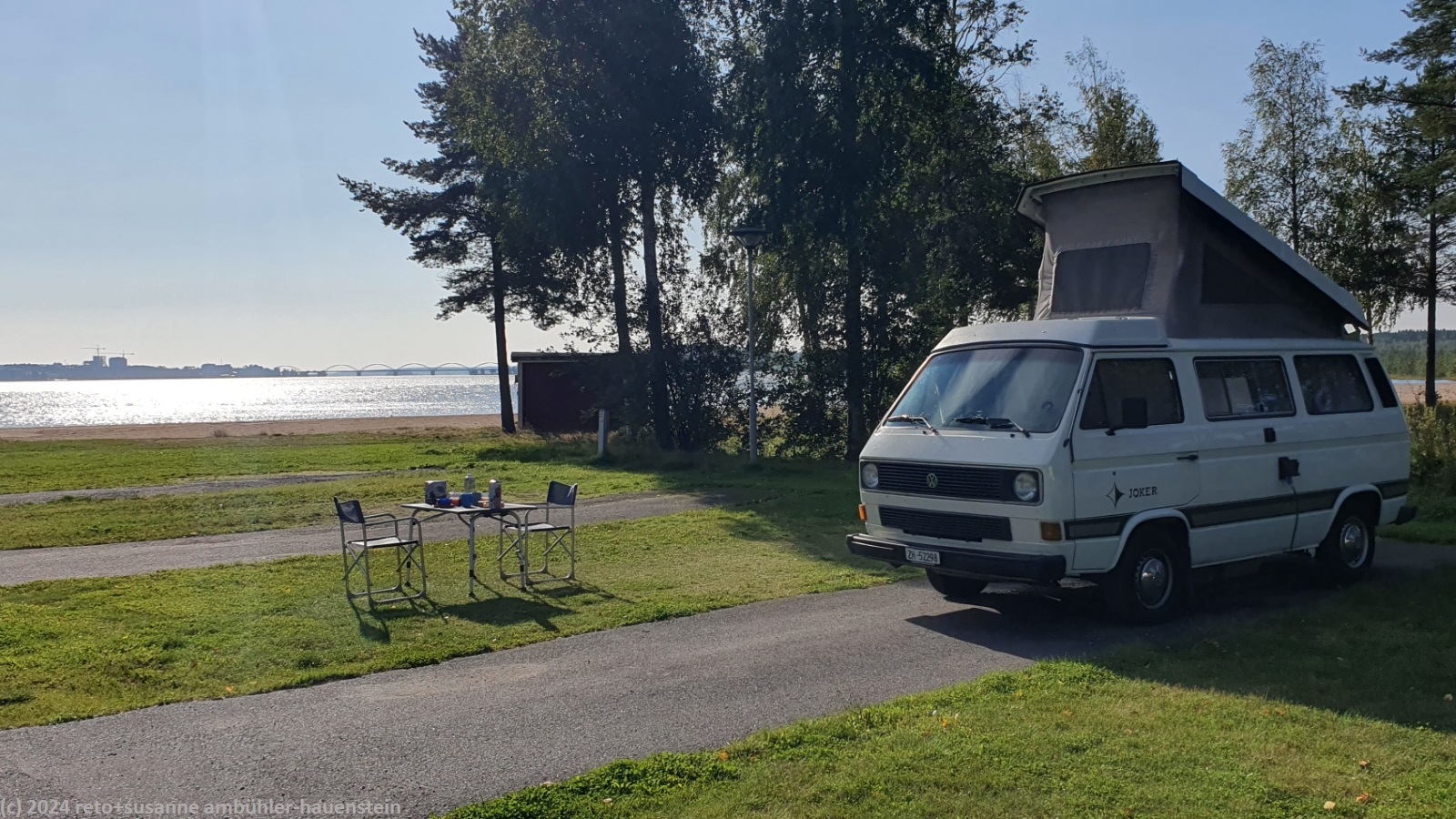 nach dem abwaschen erledigen wir diverse hausarbeiten. gegen 13 uhr ist alles erledigt und wir picknicken neben unserem jogi. um 14 uhr marschieren wir zur nahen bushaltestelle und fahren mit der linie 8 ins stadtzentrum. als wir beim buschauffeur die fahrt bezahlen wollen, funktioniert der kreditkartenleser nicht und wir dürfen umsonst mitfahren. die fahrt durch die aussenquartiere ist sehr spannend. im zentrum spazieren wir durch die fussgängerzone. es ist irgend ein fest im gang, entlang der strasse reihen sich stände aneinander, welche essen verschiedener länder anbieten. auch die schweiz ist vertreten - wenig überraschend mit zahlreichen käsesorten und fondue. in einem einkaufszentrum entdecken wir eine hübsche konditorei, in welcher wir kaffee trinken und etwas süsses dazu geniessen, "fika" nennt sich das auf schwedisch. wir machen einen abstecher zum kulturzentrum, in welchem sich die touristen information befindet, danach folgen wir der storgatan bis an deren westliches ende. dort befindet sich der campus des gymnasium von luleå. nun folgen wir einem hübschen weg entlang des wassers durch den naturpark gültzauudden zurück ins stadtzentrum. dabei gehen wir durch einen schönen wald. wir kommen auch an einem netten badeplatz mit sandstrand und beachvolleyball-felder vorbei. wieder im zentrum kaufen wir einige lebensmittel, danach nehmen wir den bus zurück zum campingplatz.