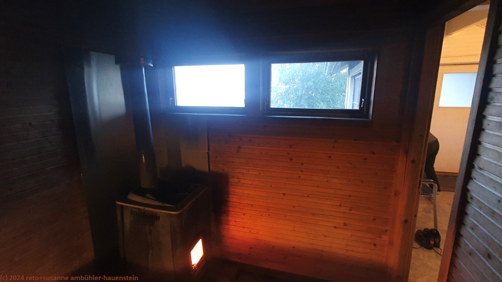 kurz nach 17 uhr sind wir wieder beim jogi. eine stunde später geniessen wir ein leckeres filet im teig. nach dem abwaschen heizen wir die sauna ein, die wir für heute abend gebucht haben. bis sie heiss ist, trinken wir eine tasse kaffee. wir machen zwei erholsame sitzungen, dazwischen kühlen wir uns im lulefjärden ab. in der nähe der sauna hat es einen wunderschönen sandstrand, das wasser ist gar nicht so kalt.