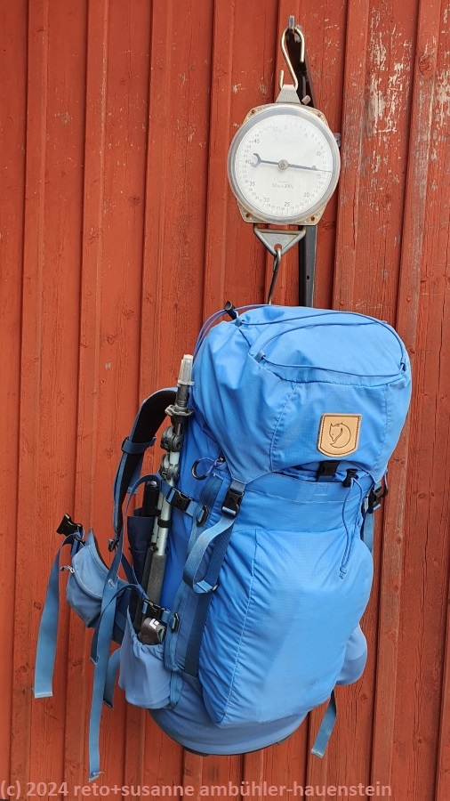 bei der fjällstation können wir endlich unsere rucksäcke wägen.