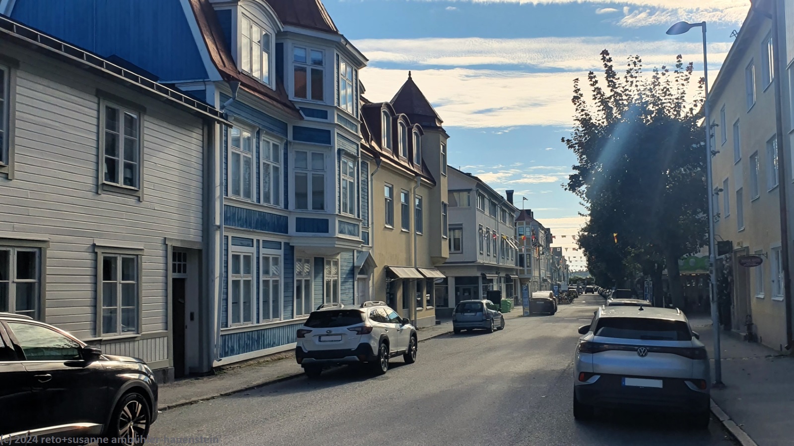 als wir um 8 uhr aufstehen, begrüsst uns sonniges wetter. wir freuen uns, im freien frühstücken zu können. anschliessend marschieren wir zum hafen in vaxholm. das boot vaxö bringt uns in 70 minuten zum schiffsanleger skeppsbron am rand der gamla stan von stockholm. wir schlendern durch die schmalen gassen der altstadt. wenig überraschend sind an diesem sonnigen samstag sehr viele leute unterwegs. zu fuss gelangen wir auf die kleine insel skeppsholmen und von da mit einem boot zur insel, auf welcher sich skansen befindet. wir essen im gartenrestaurant zu mittag, danach schlendern wir durch den park. wenn wir schon in freier wildbahn keinem elch begegnet sind, so sehen wir wenigstens hier welche. gegen 16 uhr verlassen wir skansen durch einen hinterausgang und trinken wenig später in einem schönen cafe an der kungsgatan eine tasse tee. kurz vor 18 uhr finden wir in der gamla stan ein mittelalterliches restaurant, wo wir ein abenteuerliches nachtessen geniessen. danach spazieren wir bis zum hötorget, von da fahren wir mit u-bahn und bus zurück nach vaxholm. auf dem campingplatz recherchieren wir übernachtungsmöglichkeiten auf gotland. dabei müssen wir etwas ernüchternd feststellen, dass wohl nur noch ein einziger campingplatz auf der insel offen hat. gegen 23 uhr gehen wir uns duschen und schlüpfen wenig später unter die bettdecke.