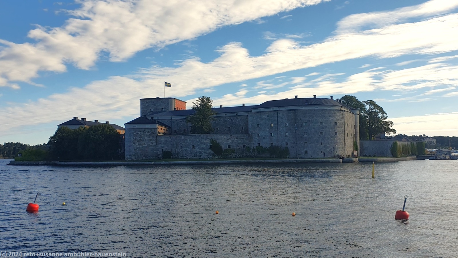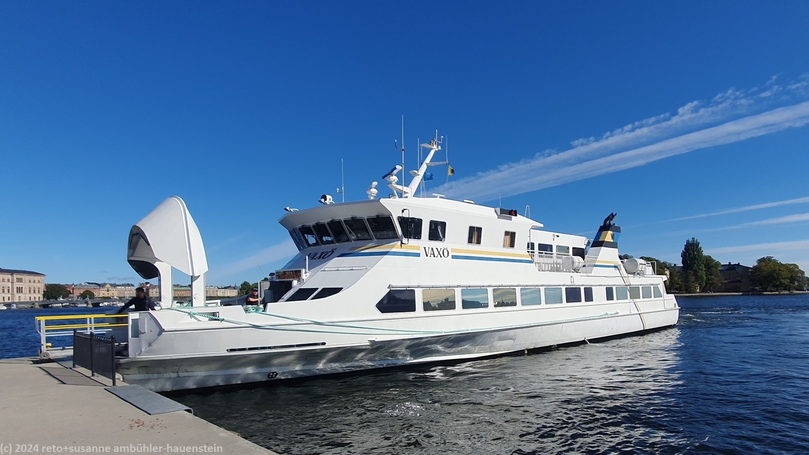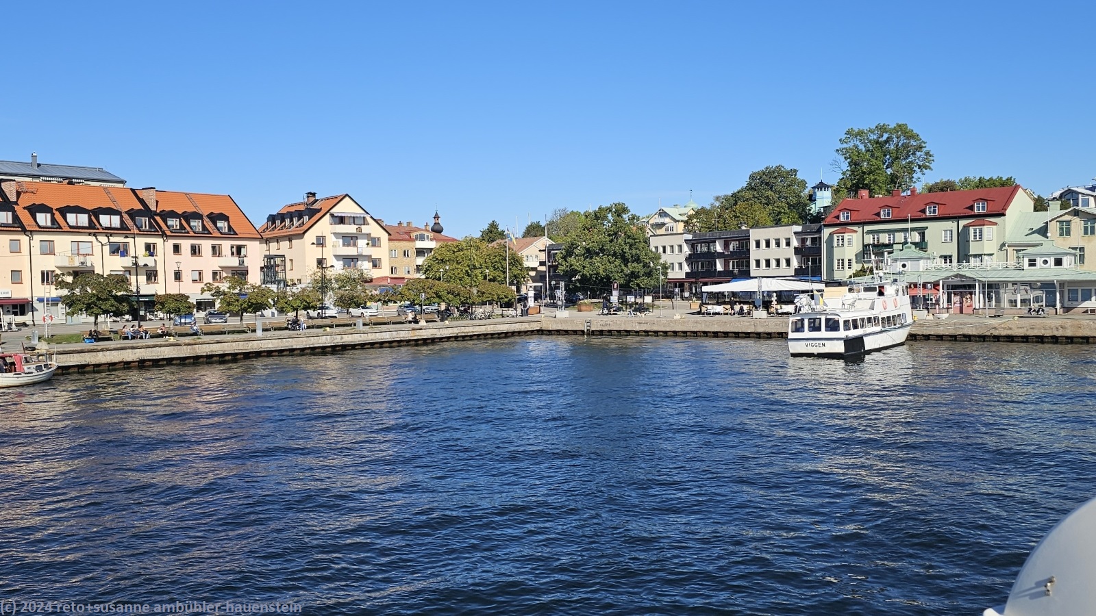 unser handy weckt uns um 8 uhr. der himmel ist nur ganz leicht bewölkt. wir frühstücken in der morgensonne, das ist sehr schön. um 09:30 uhr machen wir uns auf den weg zum hafen von vaxholm. der fussmarsch dauert 30 minuten, das heisst, es dauert noch eine halbe stunde, bis das schiff nach stockholm fährt. die waxholmsbolaget-app zeigt die position der verschiedenen boote in echtzeit, das ist cool gemacht. wir sehen die vaxö aus dem norden auf uns zukommen. das boot kommt pünktlich, das einsteigen geht sehr speditiv. mit den fahrkarten, die wir im SL-app gekauft haben, erhalten wir am lesegerät zwei tickets auf papier. das hat perfekt geklappt.