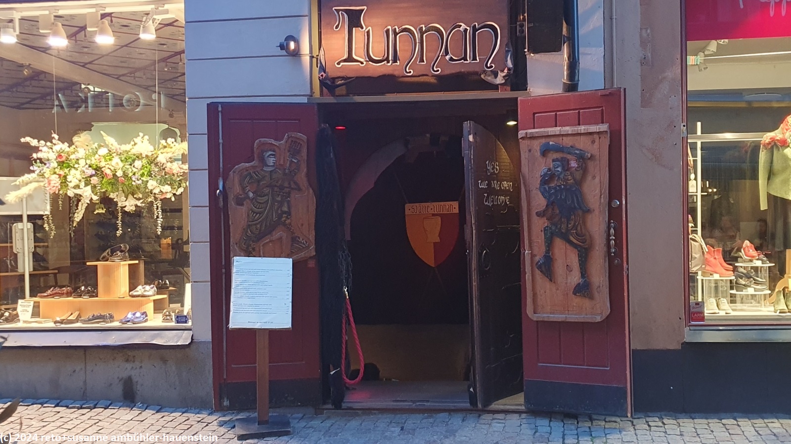 eingang zum mittelalterlichen restaurant sjätte tunnan in der gamla stan