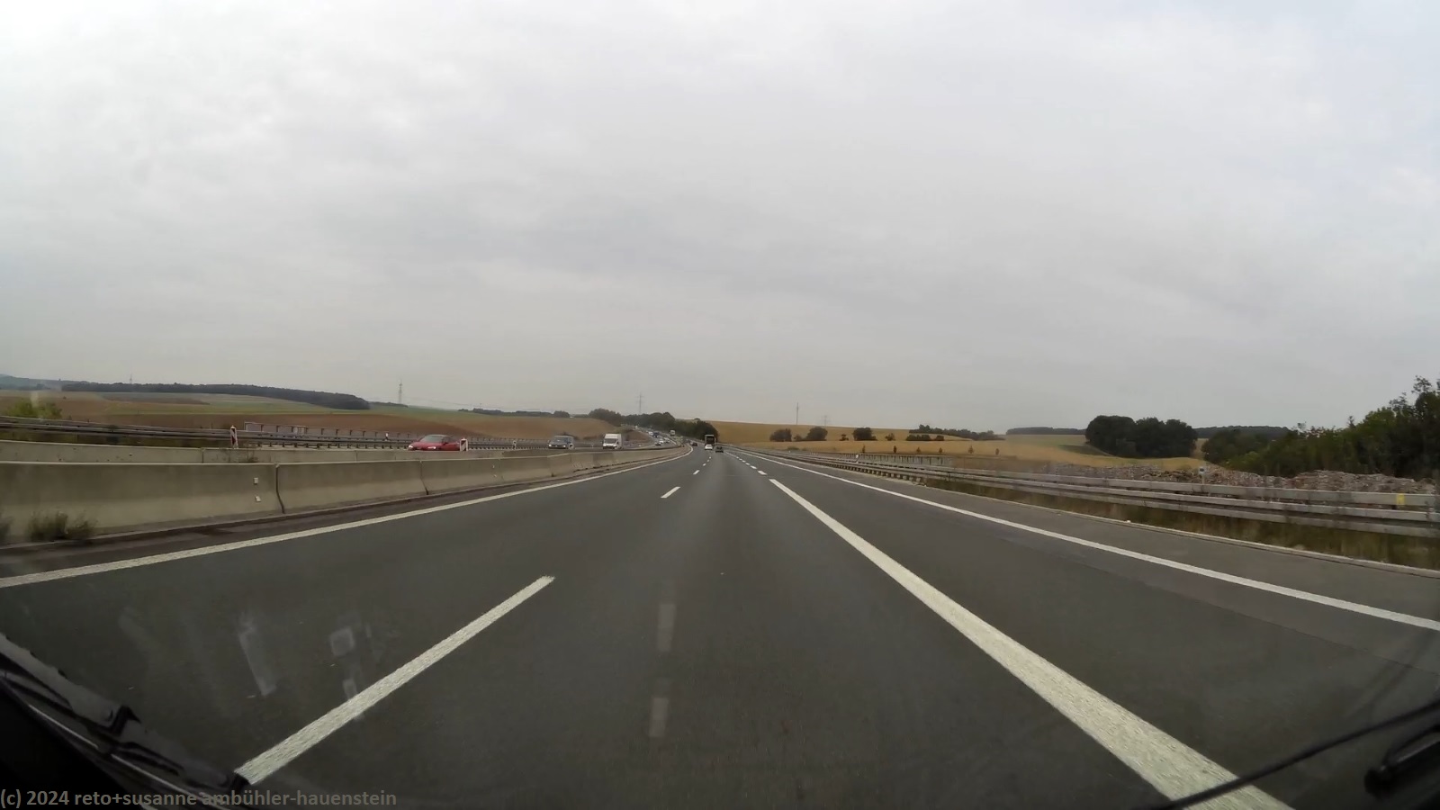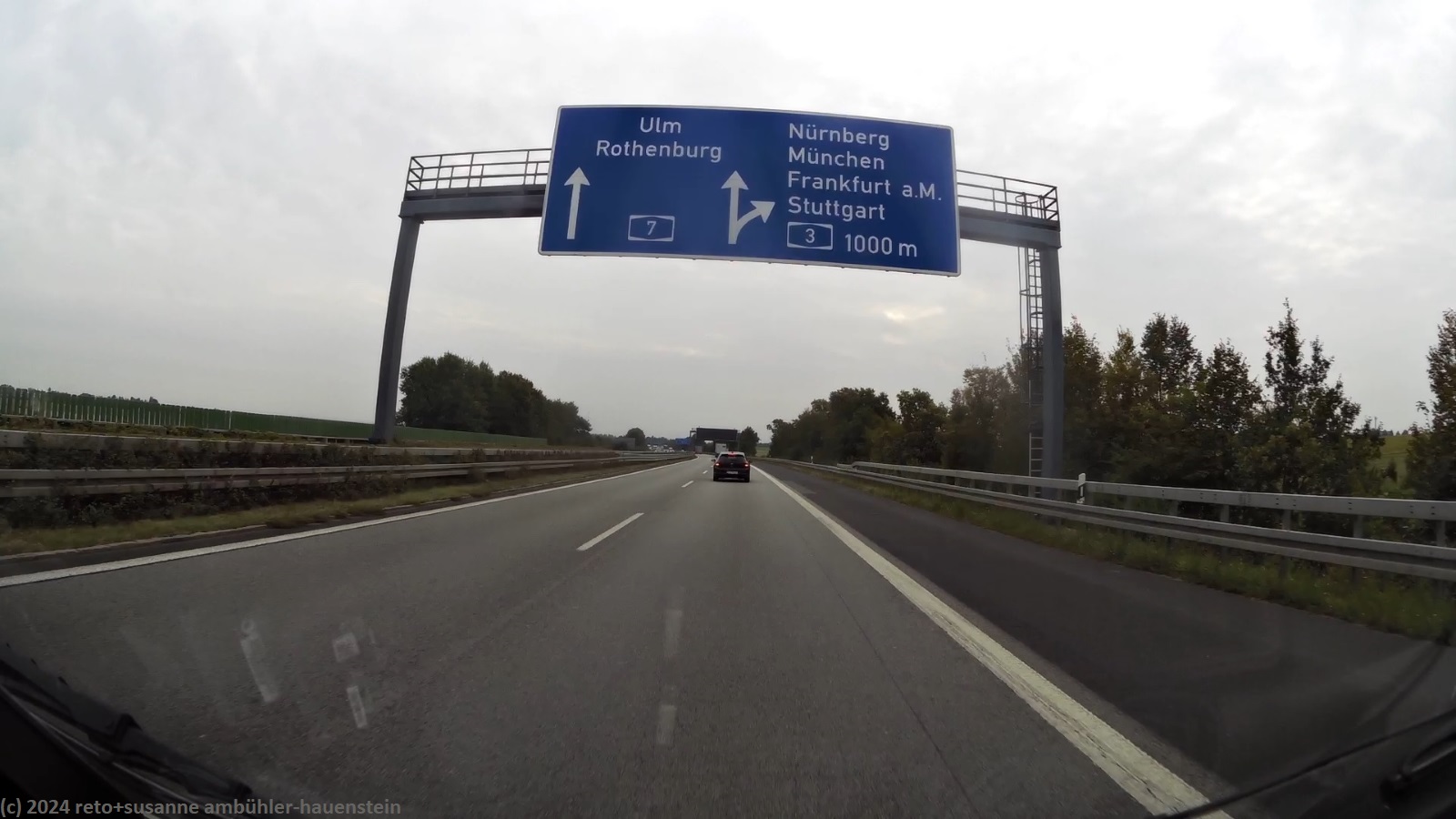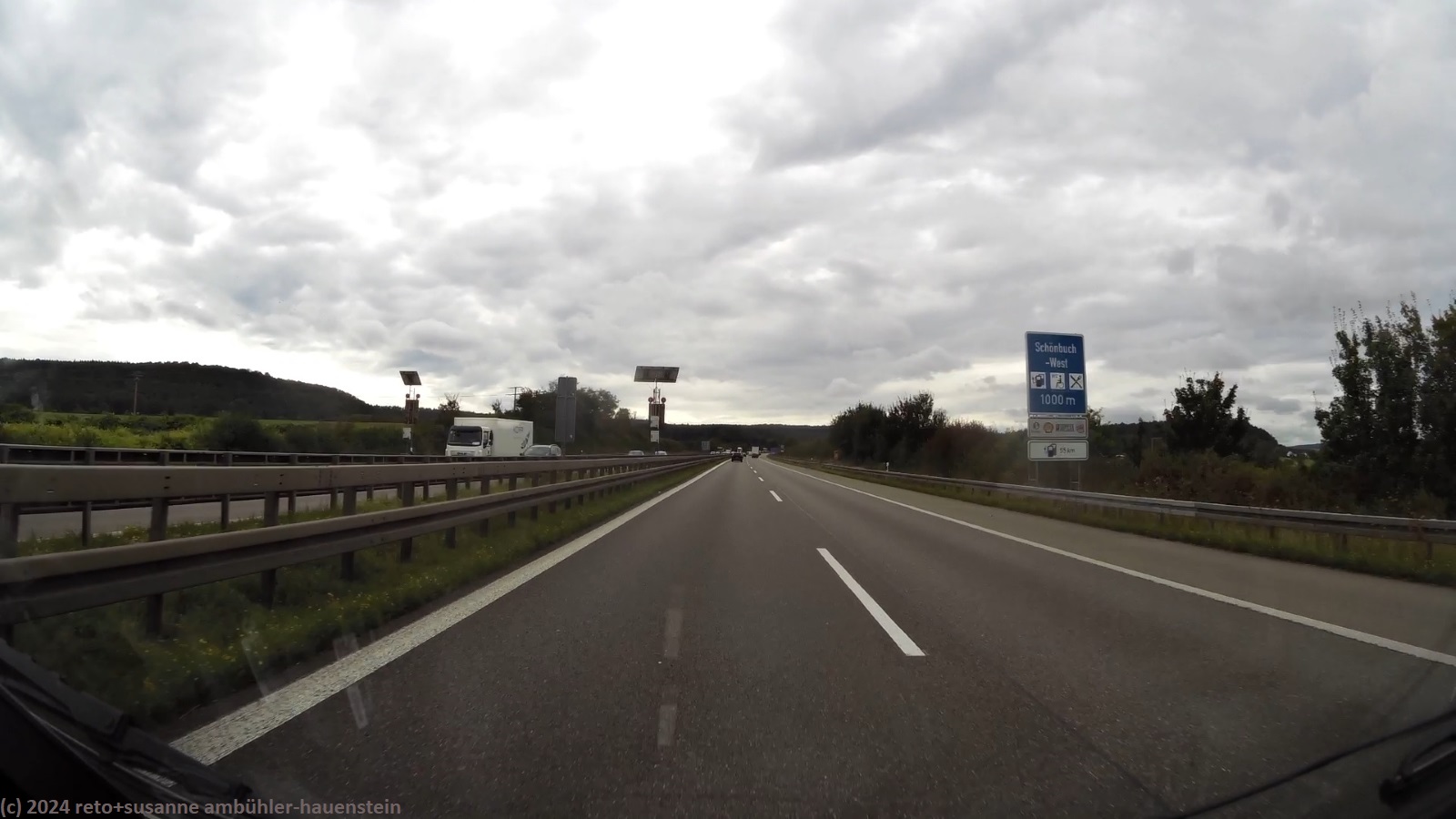 unser handy weckt uns um 07:30 uhr. der himmel ist etwas bedeckt, es ist nicht mehr ganz so warm wie gestern. wir frühstücken im freien. danach packen wir zusammen. um 09:30 uhr verlassen wir den campingplatz. in der nahen tankstelle füllen wir benzin auf, dann geht es über die bundesstrasse 287 zurück auf die A7. wie zu erwarten war, sind nun bedeuten mehr lastwagen unterwegs als am sonntag. trotzdem kommen wir besser voran als gestern. baustellen mit fahrbahnverengung bzw. -reduktion hat es auch heute, aber die staus sind nicht mehr so heftig wie gestern. gelegentlich fallen einige regentropfen. gegen 10:20 uhr wechseln wir auf der höhe von würzburg von der A7 auf die A3. seit der ausbau dieses abschnittes abgeschlossen ist, läuft der verkehr in diesem bereich sehr flüssig. nach einer viertelstunde wechseln wir auf die A81, nun geht es wieder mehr südwärts. kurz nach dem wechsel der autobahn zeigt der kilometerzähler unseres wagens 371000. der verkehr fliesst nun meistens gut, baustellen hat es aber trotzdem immer wieder einmal. um mittag stoppen wir beim rasthof schönbuch-west.