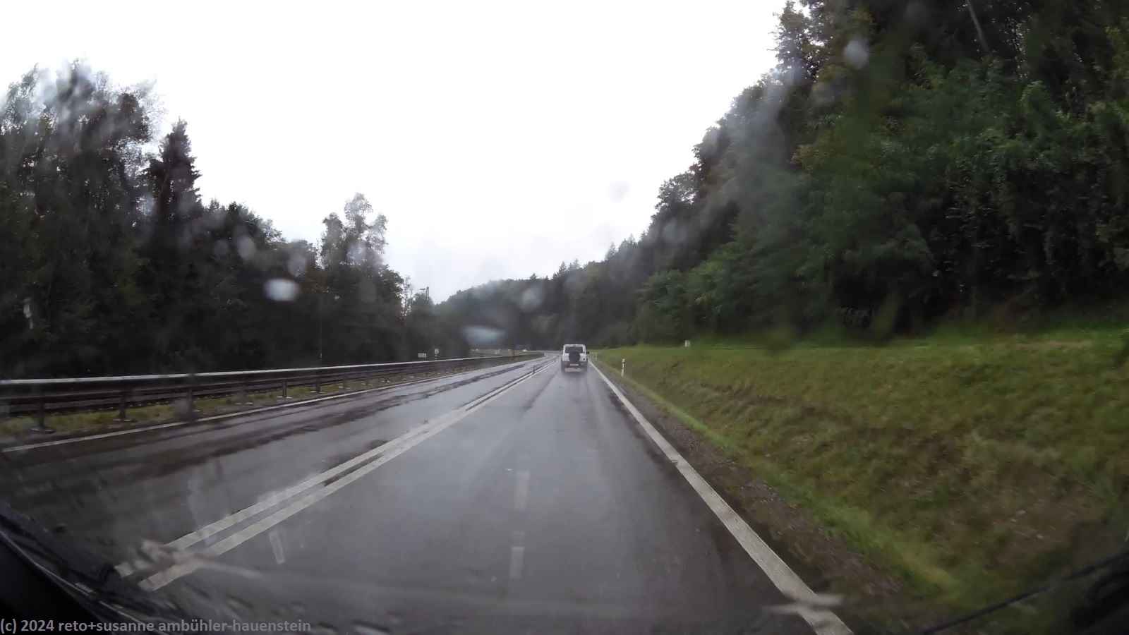 kraeftiger regen auf der A4 kurz vor schaffhausen autobahnkreuz winterthur nord im verlauf der A4