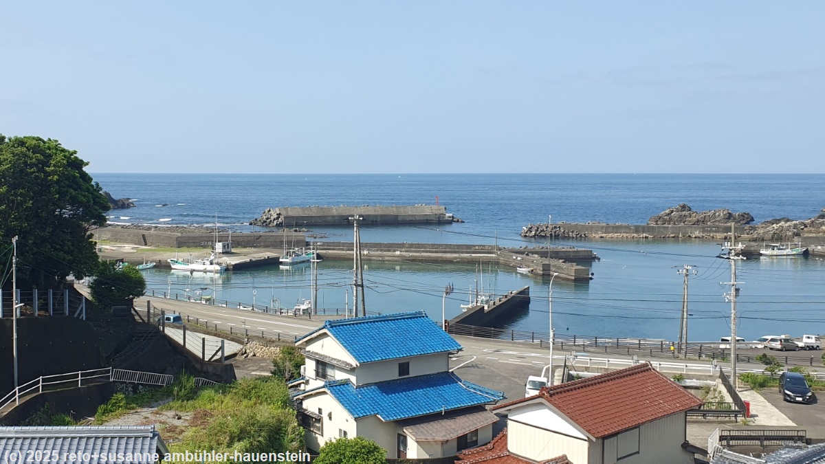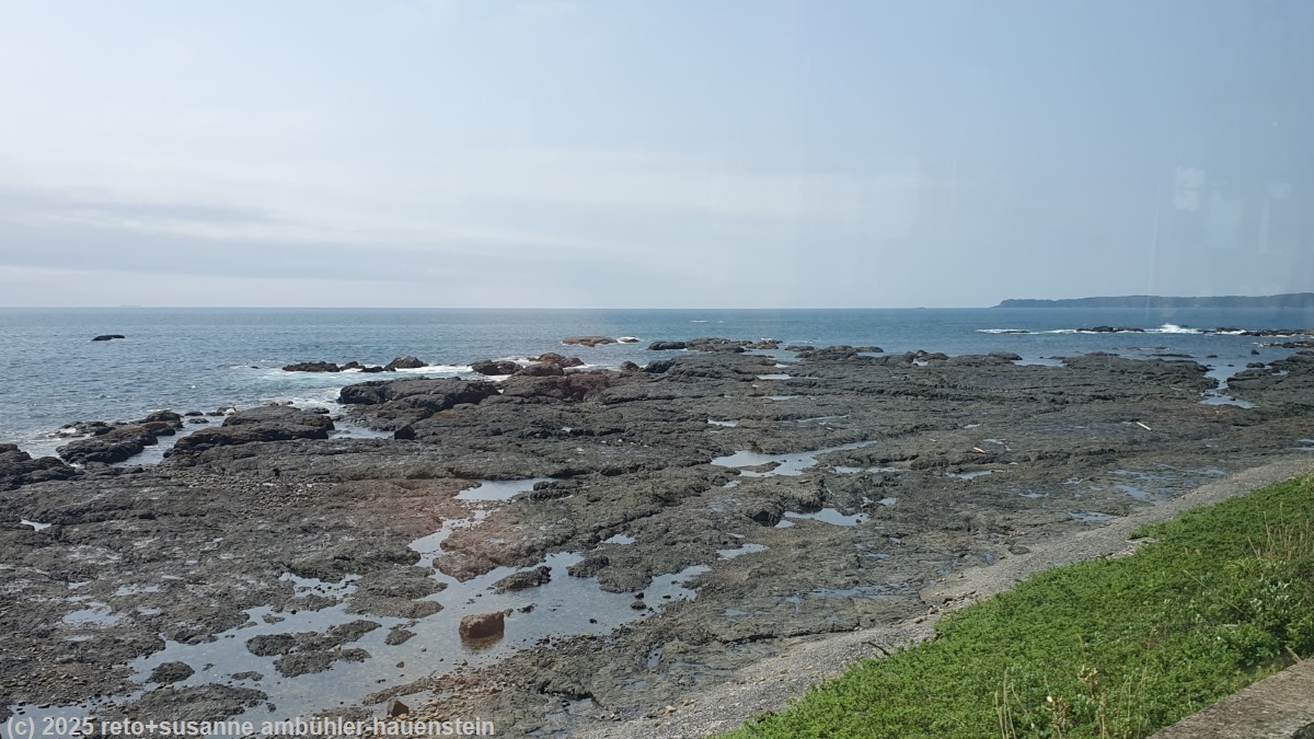 der bus startet hier, das scheint uns der bessere ort, um einzusteigen. dem ist auch so, denn schon bei der nächsten haltestelle sind alle sitzplätze besetzt. pünktlich erreichen wir den bahnhof kii-katsuura. noch immer fällt ein leichter regen. kurz vor dem bahnhof haben wir aus dem bus ein hübsches cafe gesehen. wir bestellen zwei kaffees und setzen uns an einen tisch. da meint susanne: "wann fährt eigentlich unser zug ?" wir haben eine sitzplatzreservation von shingu nach nagoya, auf dieser steht, dass unser zug um 12:45 uhr fährt. nachdem wir diese sitzplatz-reservation gemacht hatten, haben wir aber unseren reiseplan geändert und sind schon in kii-katsuura statt erst in shingu ausgestiegen. entsprechend fährt der zug hier etwas früher - nämlich in sieben minuten, um genau zu sein ! das haben wir total übersehen. wir sagen der etwas verdutzten dame hinter der theke, dass wir sofort zum bahnhof müssten und verlassen das cafe fluchtartig ohne unsere getränke. als wir zum bahnsteig kommen, steht der zug bereits da. er besteht aus nur vier wagen, einer davon ist für fahrgäste ohne sitzplatz-reservation. wir setzen uns auf unsere plätze und packen unser mittagessen aus. die fahrt verläuft angenehm. der zug braucht für die 224 km drei stunden und fünfzig minuten, dabei hält er wohl mindestens ein duzend mal. anfangs folgt das gleis dicht der küste. es hat einen schönen, endlosen kiesstrand. der himmel ist allerdings trüb und verhangen. während wir nordwärts fahren, wird das wetter freundlicher. gelegentlich scheint sogar etwas die sonne. zumindest ist es nun trocken. wir lesen und ich führe dazwischen die bücher nach. der zug trifft pünktlich um 16:15 uhr in nagoya ein. nach dem sehr angenehm ruhigen tag gestern, brauchen wir einen moment, um uns an den grossstadt-trubel zu gewöhnen. im bahnhof sind enorm viele leute unterwegs. bald haben wir den ausgang gefunden und stehen schon wenige minuten später vor dem hotel. das einschreiben geht zügig. für einmal sind wir nicht zuoberst einquartiert, sondern im zweiten stock - was wir als ersten stock bezeichnen würden, denn in japan ist das erdgeschoss der erste stock. wir richten uns ein und kaufen zwei fahrkarten für den shinkansen von nagoya via tokio nach hakodate für den 3.6.2025. danach wollen wir essen gehen. vorher möchten wir noch die niederlassung des autoverleihs finden, damit wir morgen wissen, wohin wir gehen müssen. die suche wird zu einer wahren odysee. in der buchungsbestätigung steht: "verlassen sie den bahnhof nagoya durch den taikodori ausgang und gehen sie eine minute um die station zu finden". so weit vom bahnhof entfernt sollte sie also nicht sein. auf der karte meines navis ist eine niederlassung der "nissan car rental" eingezeichnet, aber an der angegebenen position hat es bloss eine "girls bar". wir gehen durch die strassen rund um die adresse und finden schliesslich einen toyota und hertz verleih. wir fragen nach, ob wir hier richtig seien, aber man schickt uns an eine adresse am anderen ende des bahnhofgebäudes. dies ist jedoch wieder eine niederlassung des toyota verleihs und die beiden damen am schalter können uns auch nicht weiterhelfen. schliesslich hat meine frau die tolle idee, auf google map mit hilfe der telefonnummer zu suchen. die gefundene adresse liegt gerade um die ecke beim ersten toyota verleih - und siehe da, hier sind wir richtig. die dame am schalter meint, sie seien im märz umgezogen, das erklärt einiges. diese niederlassung ist keine 300 meter von unserem hotel entfernt, das passt tiptop. bloss gut, haben wir diesen irrlauf heute ohne gepäck gemacht. morgen mit den schweren rucksäcken hätten wir das weniger lustig gefunden. nun können wir uns endlich auf die suche nach einem restaurant machen. meine frau meint, wir sollen es im oder um den bahnhof versuchen. heute steht uns der sinn gar nicht nach japanischem essen. als wir auf einem restaurant-verzeichnis ein italienisches restaurant im zwölften stock finden, sind wir uns rasch einig. im "mano magio" gibt es ein "dinner set für zwei". dieses umfasst einen salat, eine pizza und pasta sowie zwei getränke. die einzelnen speisen kann man aus der karte auswählen. wir bestellen einen salat aus zehn gemüsen, eine pizza mit schinken, käse und ruccola sowie spaghetti mit käse. das schmeckt sehr gut. wir runden das mahl im starbucks mit kaffee, tee und einem stück erdbeertorte ab. zufrieden kehren wir zum hotel zurück. wir duschen, lesen, führen die bücher nach und löschen gegen 23 uhr das licht.