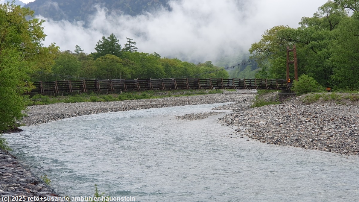 wir stehen kurz vor 8 uhr auf und frühstücken im hotelrestaurant. um 10:30 uhr machen wir uns auf den weg. bei einem grossen supermarkt kaufen wir lebensmittel für die kommenden tage. die fahrt verläuft sehr entspannt. gegen 12:30 uhr erreichen wir hirayu. wir picknicken beim besucherzentrum, danach fahren wir mit einem bus nach kamikochi. das wetter ist inzwischen trüb und regnerisch geworden. trotzdem wandern wir über den azusa river trail bis zur myojin brücke und wieder zurück zur bushaltestelle kamikochi. wir marschieren durch einen schönen wald und begegnen mehreren affen. ein bus bringt uns zum parkplatz akandana, wo unser wagen steht. die fahrt zu unserem tagesziel norikura in der gemeinde matsumoto führt über kurvenreiche strassen mit zahlreichen tunnels. das raicho onsen inn ist eine tolle unterkunft. wir übernachten in einem traditionellen schlafraum. susanne bereitet in der gemeinschaftsküche ein leckeres abendessen zu. nach dem essen reinigen wir uns in einem der privaten onsen, anschliessend verbringen wir einen gemütlichen abend in unserem zimmer.