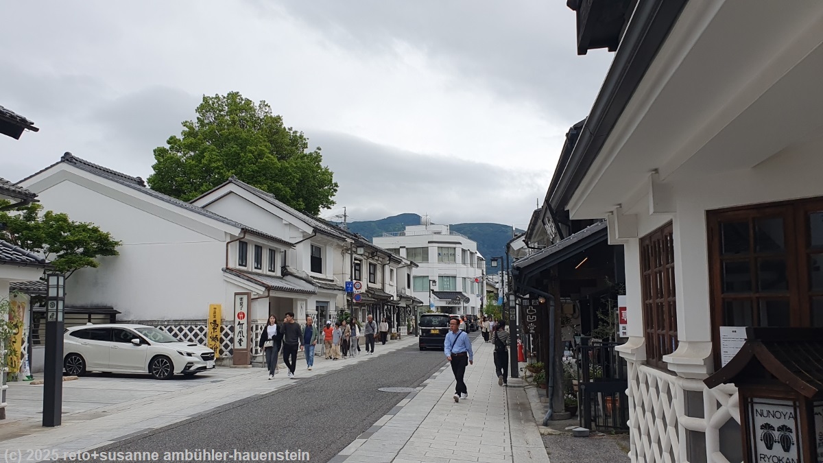 wir stehen um 07:30 uhr auf und frühstücken in der gemeinschaftsküche. zwei stunden später machen wir uns auf den weg richtung matsumoto. anfangs verläuft die fahrt sehr flüssig, aber auf der strasse 158 verursacht ein schleicher eine lange kolonne und verzögert die fahrt sehr unnötig. auch in der stadt matsumoto herrscht ein verkehrschaos. mit etwas geduld erhaschen wir einen parkplatz beim schloss. wir spazieren erst durch den schlossgarten und machen uns danach auf den weg zur einkaufsstrasse nakamachi dori mit ihren kunsthandwerkgeschäfter. nach einigem hin und her einigen wir uns, in der panateria zu mittag zu essen. um 13:30 uhr machen wir uns wieder auf den weg. ungeschickterweise verpasse ich beim ersten versuch die einfahrt zur E19 und so fahren wir einmal im kreis, bis wir endlich auf der autobahn sind. nun entspannt sich die situation und wir rollen zufrieden südwärts. bei achi wendet sich die strasse westwärts und wir durchfahren den mount amikake in einem endlos scheinenden tunnel. um 15:30 uhr erreichen wir unser tagesziel nakatsugawa. wir tun uns etwas schwer, den eingang zur unterkunft zu finden. diese ist unbedient, die zugangcodes haben wir per email erhalten. wir beschaffen uns beim besucherzentrum informationen zur morgigen wanderung und kaufen im riesigen einkaufszentrum valor ein. susanne kocht in der gemeinschaftsküche unserer unterkunft ein köstliches nachtessen, danach plant sie die morgige wanderung, ich führe die bücher nach. gegen 23 uhr sind wir im bett.