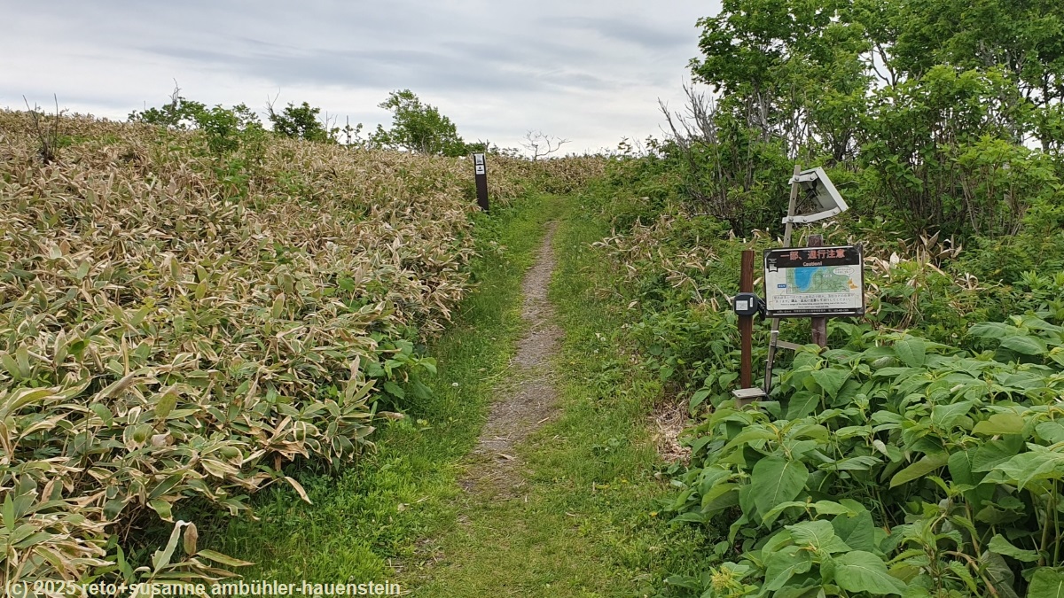 nach dem frühstück fahren wir zum nahen lake mashu observation deck no. 1. von der aussichtsplattform haben wir frei sicht auf den lake mashu im osten, aber das tal südwestlich liegt unter einer dicken nebeldecke. um 10:15 uhr starten wir zu unserer wanderung richtung mount mashu. der schöne wanderweg ist einfach zu begehen und führt durch eine abwechslungsreiche landschaft. der letzte aufstieg zum gipfel des 857 m hohen mount mashu entpuppt sich als kleine herausforderung. er ist sehr steil und der pfad führt über wurzeln und gesteinsbrocken. vom gipfel haben wir eine fantastische rundsicht. das wetter ist freundlicher geworden, wir sehen nun auch den lake kussharo. es geht allerdings ein kräftiger wind. wir picknicken trotzdem auf dem gipfel. auf dem rückweg zum ausgangspunkt zeigt sich nun öfters die sonne. aber als wir beim parkplatz ankommen, hat das wetter wieder umgeschlagen. wir trinken einen kaffee und folgen dann der passstrasse nordwärts. das wetter ist am nachmittag trüb. wir besuchen erst das kawayu visitor center, danach reinigen und wärmen wir uns im onsen des kawayu kanko hotel. kurz nach 18 uhr sind wir wieder auf dem campingplatz. wir geniessen das nachtessen, danach planen wir die route für morgen. gegen 23 uhr schlüpfen wir in unsere schlafsäcke.