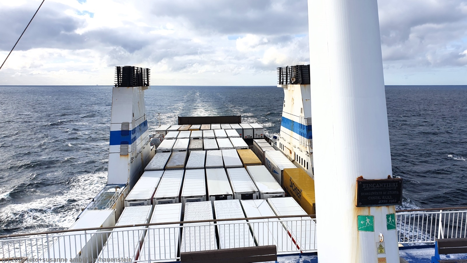 nach einer ruhigen nacht weckt uns unser handy um 9 uhr. wir frühstücken im restaurant an bord der fähre. den vormittag verbringen wir im aufenthaltsbereich und arbeiten an unseren computern. gegen 12:30 uhr besuchen wir nochmals das restaurant und essen eine kleinigkeit. danach ziehen wir warme kleider über und verbringen etwas zeit auf dem oberdeck. die temperatur liegt unter dem gefrierpunkt, dazu geht ein steifer wind. der boden des aussendecks ist mit gefrorenem wasser und schnee bedeckt, es ist enorm rutschig. den nachmittag verbringen wir wiederum an unseren computern an einem tisch mit blick aufs meer. um 19:45 uhr begeben wir uns erneut ins restaurant und geniessen das buffet. danach setzen wir uns wieder in den aufenthaltsbereich. susanne schaut einen film und liest, ich führe die bücher nach und arbeite an diesem reisebericht. gegen 23 uhr ziehen wir uns in unsere kabine zurück. susanne schläft schon bald, ich schaue mir noch das spiel der schweizer eishockeyspielerinnen gegen die finninnen an und freue mich über den hart umkämpften einzug in den halbfinal der olympischen spiele.
