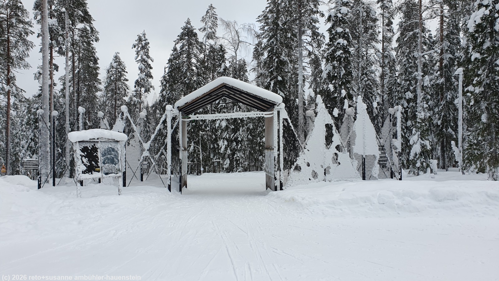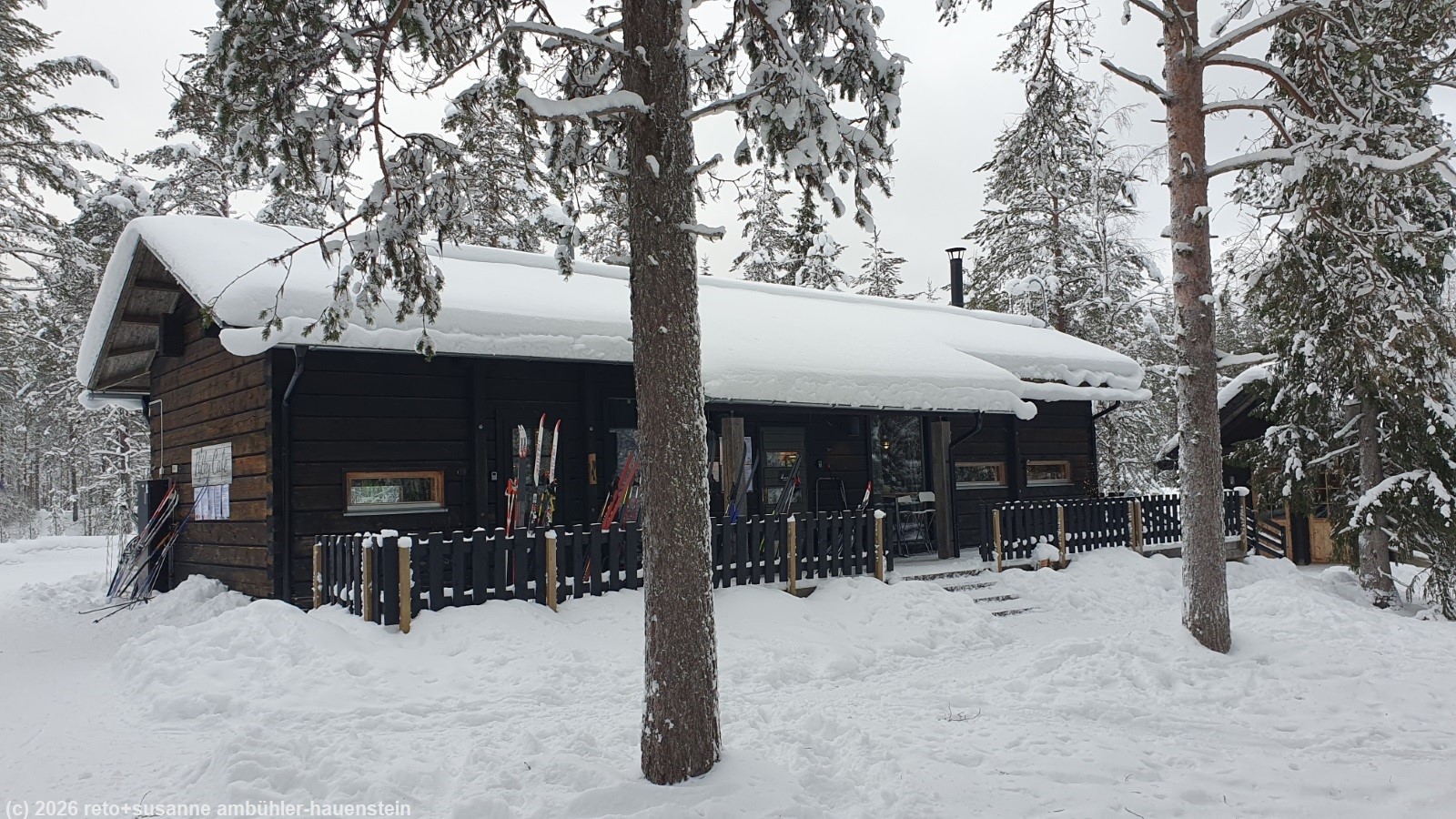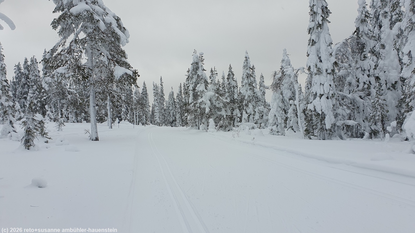 wir stehen um 07:45 uhr auf und frühstücken in unserem appartement. zwei stunden später machen wir uns auf den weg zum ski center iso-syöte. wir mieten zwei langlaufausrüstungen. als einstieg laufen wir über die loipe iso-syötteen ympäryslatu welche rund um den berg iso-syöte führt. nach einer halben stunde sind wir beim besucherzentrum des syöte nationalpark. dieses ist allerdings geschlossen. wir setzen daher unseren lauf schon bald fort. die loipe führt durch einen herrlichen winterwald und ist in sehr gutem zustand. im süden des iso-syöte nehmen wir die zusatzschleife über die loipe pytkyn latu in angriff. gegen 12:15 uhr erreichen wir die schutzhütte riihitupa. hier picknicken wir am feuer im offenen kamin. 40 minuten später brechen wir ziemlich durchfroren wieder auf. im pytky cafe geniessen wir kaffee und kuchen. um 15:20 uhr sind wir wieder beim wagen. wir fahren zurück zu unserer unterkunft. etwas später geniessen wir zwei sitzungen in der sauna und danach ein köstliches nachtessen. anschliessend verbringen wir einen gemütlichen abend in unserem appartement.
