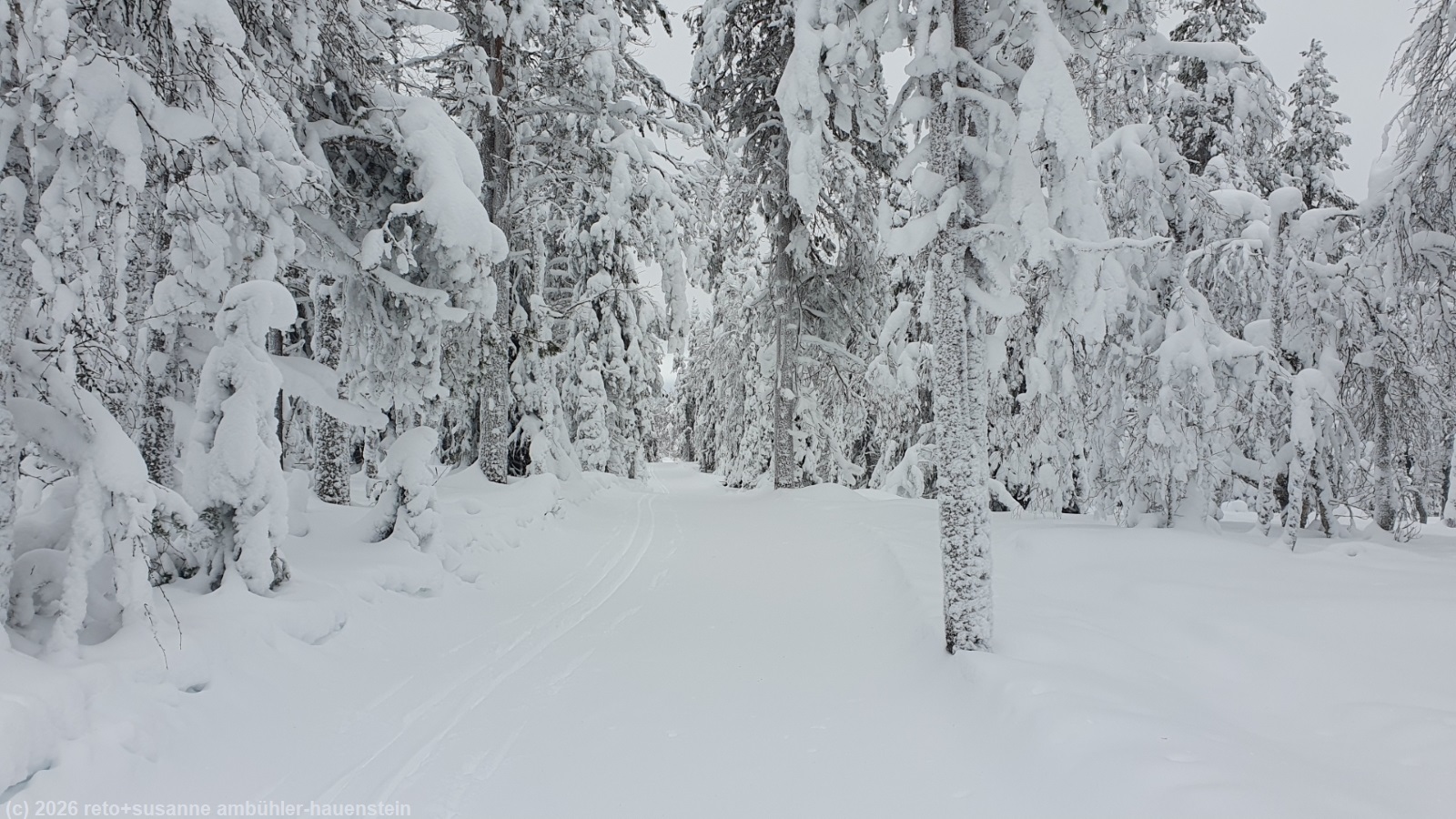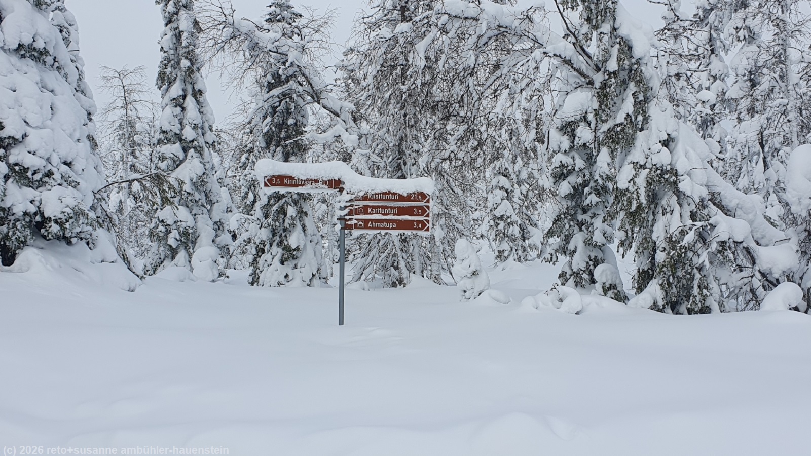 wir stehen um 8 uhr auf. der himmel ist auch heute bedeckt. nach dem frühstück fahren wir zum parkplatz kirikeskus. das ziel unseres heutigen laufs ist der karitunturi. der karitunturin erämaalatu ist nicht präpariert, es ist aber eine zugeschneite spur zu erkennen. auf den ersten 7 km ist der weg ein auf und ab. wir laufen durch einen herrlichen winterwald. beim unterstand kuoppavaara laavu machen wir 20 minuten pause. der eigentliche aufstieg zum 415 meter hohen tunturi beginnt erst auf dem letzten kilometer. in der kleinen schutzhütte auf dem gipfel des karitunturi feuern wir den ofen ein und picknicken. zwischen den bäumen hindurch haben wir eine wunderschöne aussicht auf die ebene unter uns. wir laufen den gleichen weg zurück, den wir gekommen sind. um 15:15 uhr sind wir wieder beim auto. da das restaurant bei kirikeskus heute geschlossen ist, fahren wir zurück nach himmerki und geniessen kaffee und kuchen im restaurant des holiday village. zurück in der hütte heizen wir die sauna ein und packen schon mal ein bisschen. nach dem nachtessen liest susanne, ich führe die bücher nach und beschäftige mich wieder mit den bilder dieser reise. kurz nach 23 uhr schlüpfen wir unter die bettdecke.