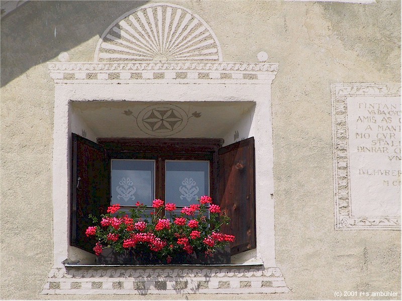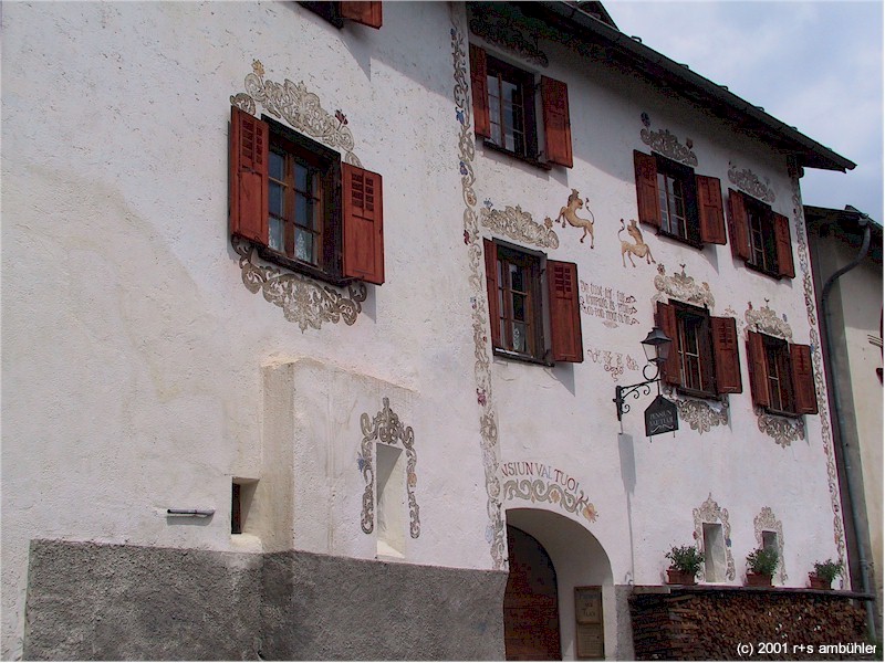 Guarda is a small village located high above the lower part of the valley Engadin (or "Engiadina" in Romansh) in the canton Graubünden at an elevation of 1650 meters above sea level (5413 feet). Once an almost deserted place due to its remote location, it has been revived after most houses have been renovated and sold at attractive prices. Today, Guarda is an attractive place for people seeking quietness and room for outdoor activities. In addition, the village is situated close to the Swiss national park.