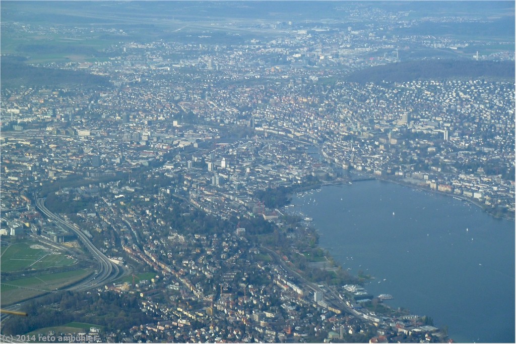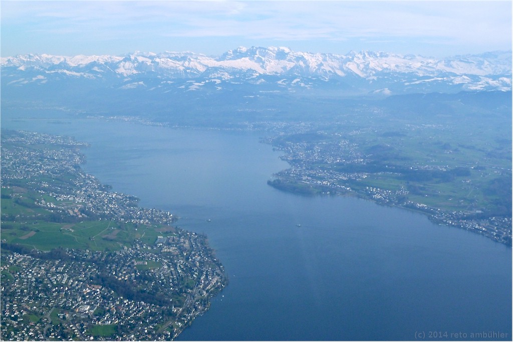 Aerial view towards the upper end of lake Zürich