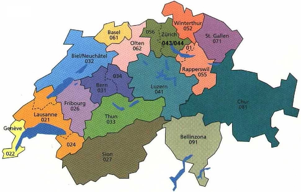 Area codes in Switzerland (click on the image to enlarge):