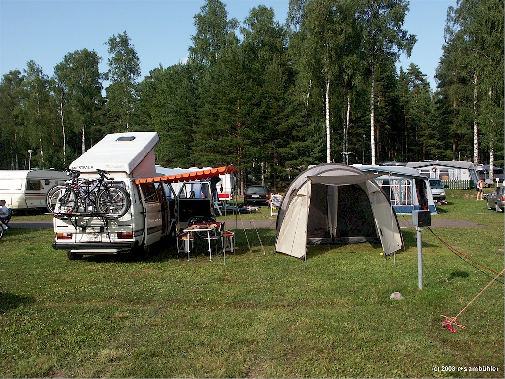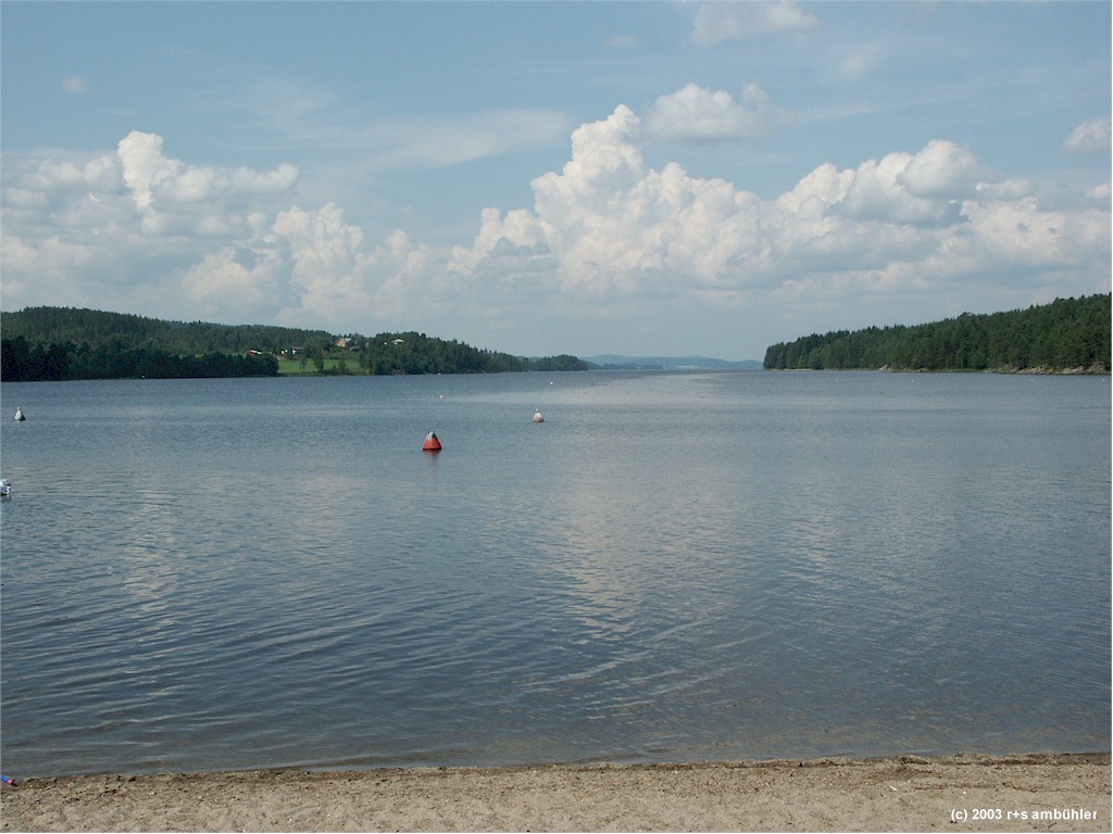 1600 wir erreichen arvika, das ziel unserer heutigen fahrt. den campingplatz "ingestrand" haben wir schnell gefunden. es ist ein wunderschöner platz am östlichen ufer des "glafsfjorden". es gibt sogar noch eine freie parzelle in der dritten reihe am see. wir stellen unser grosses zelt auf, dann kühlen wir uns im see ab. das wasser ist zwar etwas trüb, aber wohl sauber und vorallem angenehm warm.