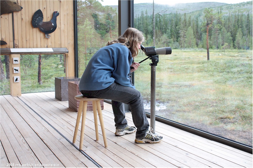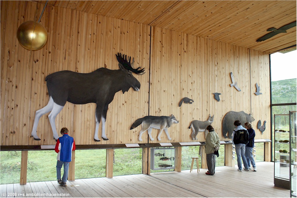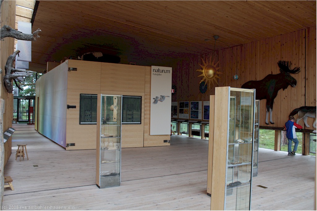 inzwischen hat der regen wie erhofft aufgehört. im besucherzentrum hängt eine sehr detailierte wetterprognose mit vorhersagen auf stundenbasis. gemäss dieser prognose sollte es trocken sein, zwischen 14 und 16 uhr sei aber nochmals mit regenschauern zu rechnen. wir verbringen eine ganze stunde im besucherzentrum und informieren uns ausführlich über die tierwelt in schweden.
