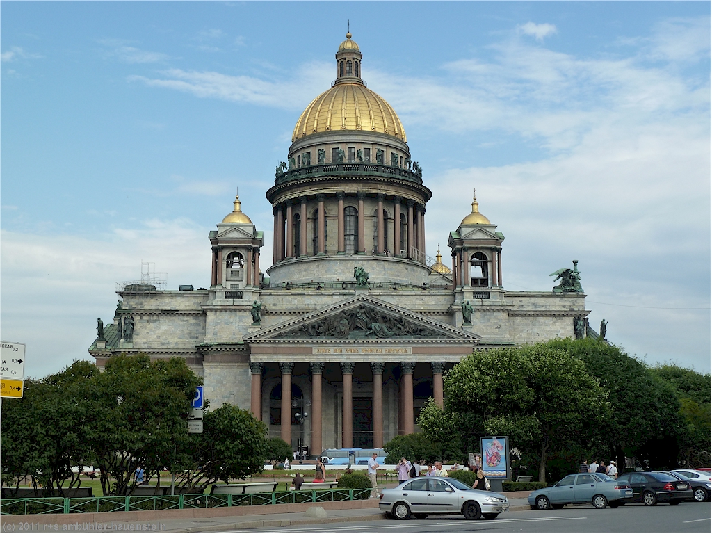 wir stehen um 0845 uhr auf und geniessen zum letzten mal das frühstück im hotel, anschliessend packen wir. die koffer können wir im hotel deponieren. auf dem weg zur isaakskathedrale (isaakievsky sobor) schätzen wir einmal mehr eine wirklich geniale einrichtung an den fussgängerstreifen mit ampel: oft hat es dort einen "countdown", eine rückwärtslaufende uhr, welche anzeigt, wie lange die grünphase noch dauert. so weiss man sofort, ob man noch gemütlich über die strasse gehen kann, sich beeilen muss, oder ob man besser gleich auf die nächste grünphase wartet.