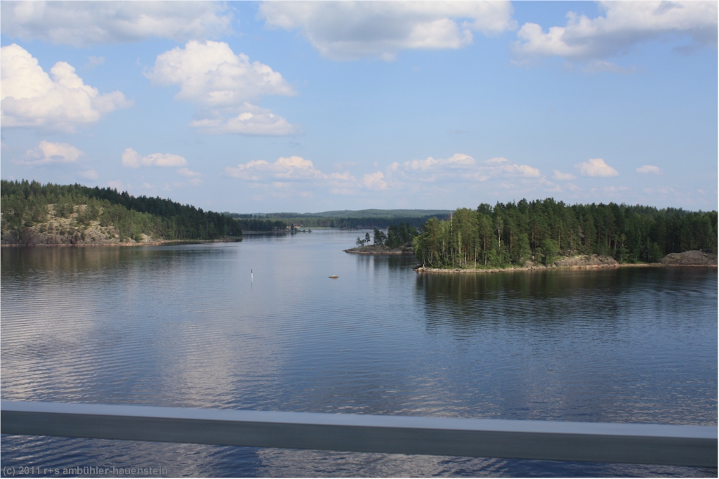 kurz vor 1500 uhr setzen wir unsere fahrt fort. wir folgen weiterhin der strasse 62, die uns nun mitten durch die finnische seenplatte führt. auf der karte auf dem GPS sehen wir meistens mehr wasser als land. wenn nicht gerade bäume die aussicht versperren, sehen wir auf die seen, welche das tiefe blau des fast wolkenlosen himmels widerspiegeln. nördlich von puumala treffen wir auf die strasse 434, dieser folgen wir nordwärts bis zur gabelung, bei der sich die strasse 435 von der 434 trennt.