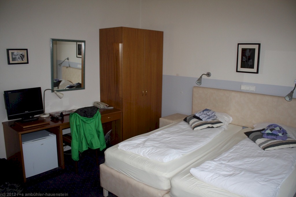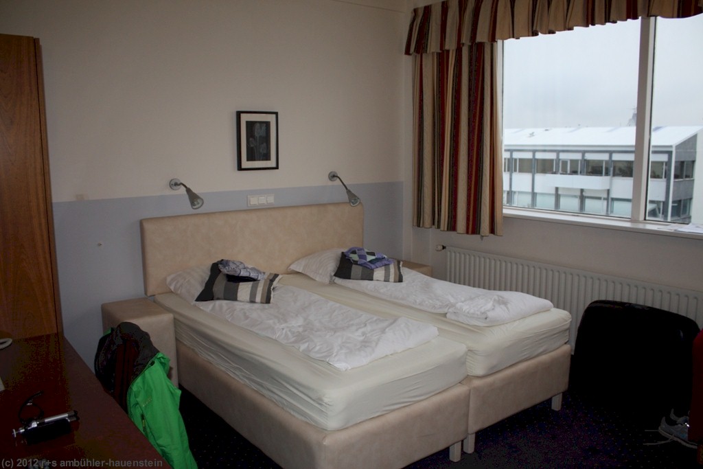 wir essen in einem kleinen einkaufszentrum zu mittag und beziehen bargeld. danach fahren wir zum büro von extrem iceland um die sendung mit susannes linsen abzuholen. sie hatte ihre ersatzlinsen daheim vergessen, unsere tochter hatte sie uns deshalb mit fedex nachgeschickt. wir werden sehr freundlich empfangen und man vermittelt uns für heute nacht ein zimmer im arctic comfort hotel. wir beziehen unser hotelzimmer und fahren dann zum nahen sundlaug laugardalur - dem grossen schwimmbad mitten in der stadt. zuerst schwimmen wir einige längen im 50-meter becken, danach setzen wir uns in die warmen pots. die wassertemperatur bewegt sich zwischen 36° und 44°, wobei letzteres schon fast unerträglich warm ist. im wärmsten pool halten wir es nur kurze zeit aus. zum abschluss verbringen wir einige minuten in der 50° heissen dampfsauna. durch und durch aufgeheizt und frisch geduscht verlassen wir kurz nach 1800 uhr das schwimmbad.