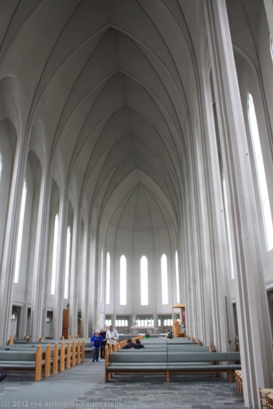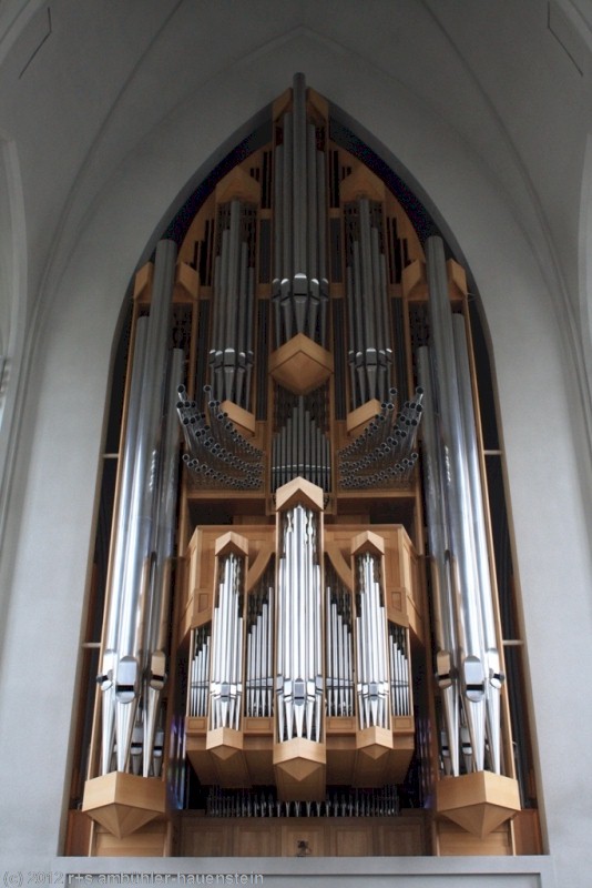 die hallgrimskirkja ist ein weiteres beispiel der aussergewöhnlichen kirchen in island. der architekt liess sich ganz offensichtlich von den basaltsäulen inspirieren, welche man überall in island findet. im innern ist die kirche sehr schlicht gehalten, die orgel über dem eingang ist dagegen ein beeindruckendes koloss.