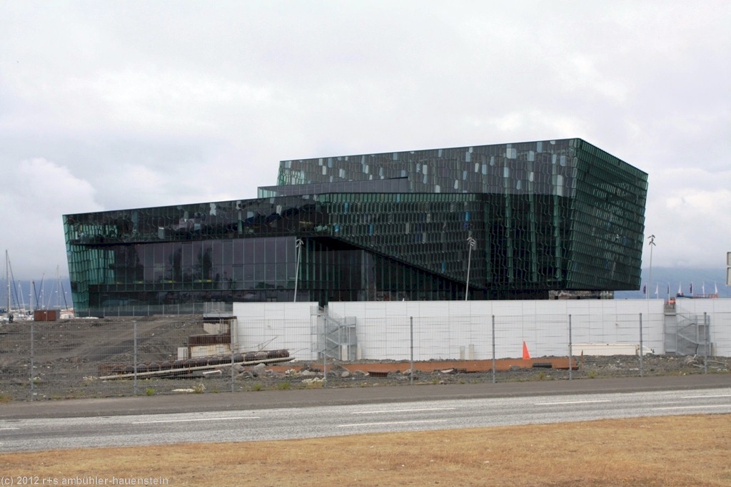 nach dem essen fahren wir ins stadtzentrum. wir parkieren beim hafen in der nähe des hochmodernen kongress- und kulturzentrum harpa. es hat eine sehr futuristische fassade und soll auch im innern mit modernster technik aufwarten.