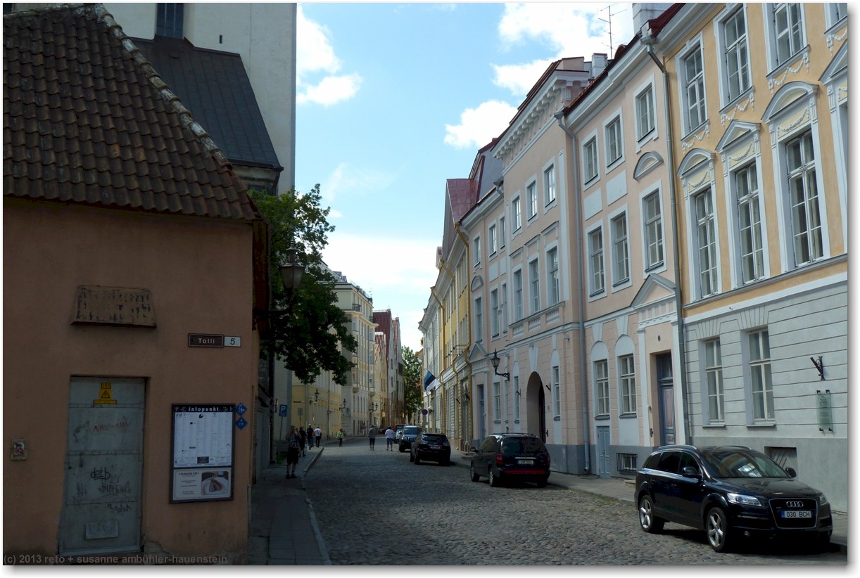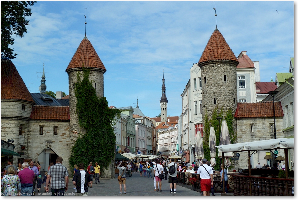 kurz vor 1030 uhr machen wir uns auf den weg. durch das moderne einkaufszentrum auf der anderen strassenseite gelangen wir zum eingang zur altstadt. beim fussgängerstreifen über die breite pärnu mnt hat es einen countdown sowohl für die rot- als auch für die grünphase, das ist äusserst praktisch.