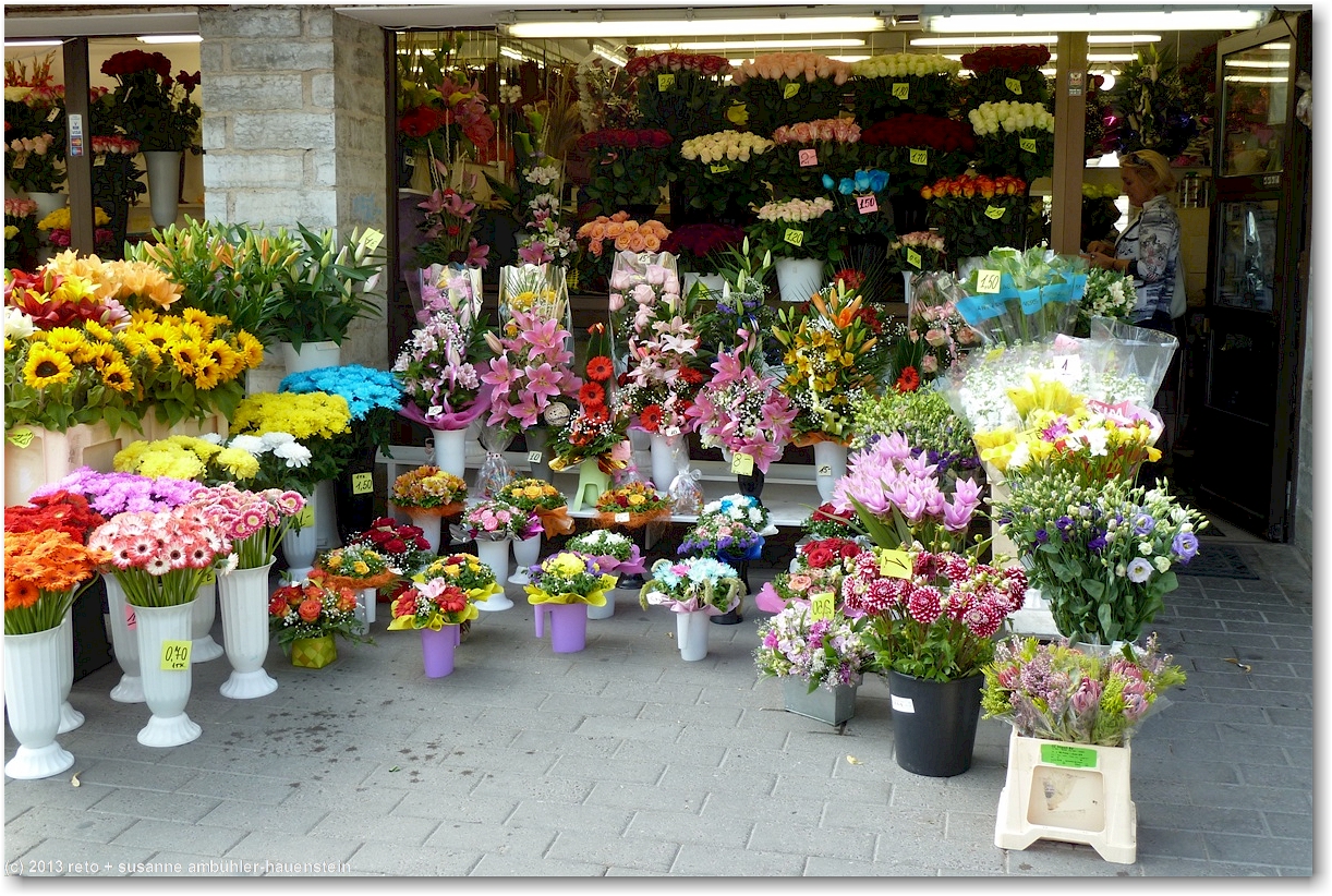 vor dem ehemaligen stadttor hat es zahlreiche läden mit unglaublich prachtvollen blumen und sträussen.