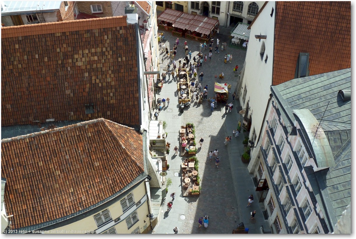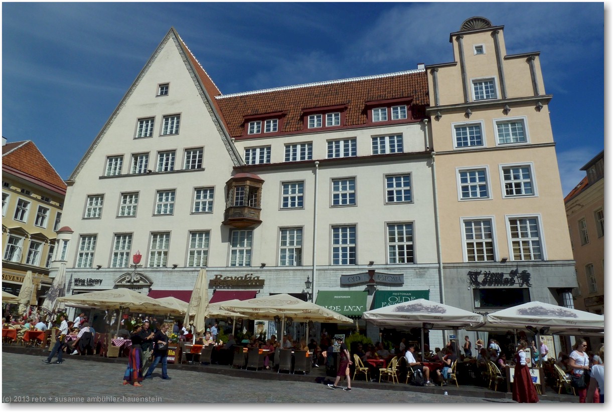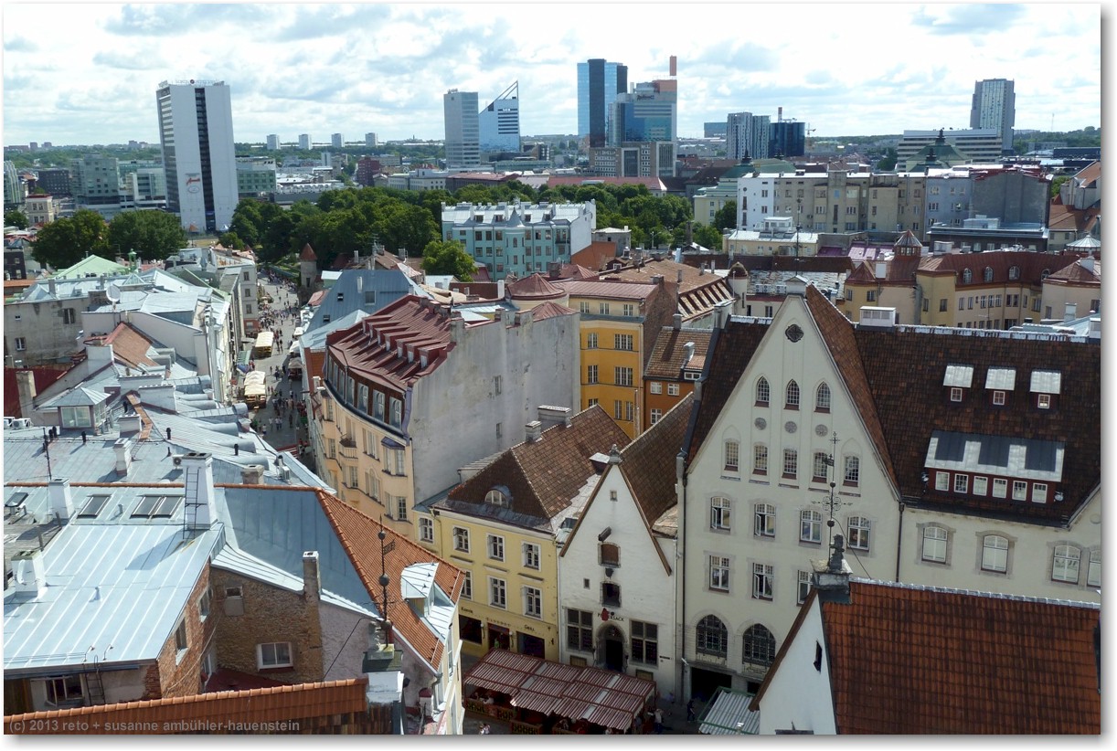 wir empfinden tallinn als eine hübsche, freundliche und übersichtliche stadt. das motto "vergangenheit trifft zukunft" trifft den geist ziemlich gut. allerdings scheint mir, das schwergewicht liegt zur zeit ziemlich stark auf der vergangenheit, zumindest die altstadt ist mehr oder weniger ein lebendes museum. die traditionellen häuser sind wunderschön herausgeputzt, in den läden wird traditionelles handwerk angeboten und das personal in den meisten restaurants trägt traditionelle kleidung. es wäre interessant zu wissen, wie die bevölkerung die sache sieht. ich kann mir gute vorstellen, dass vorallem die jungen leute irgendwann das leben im museum satt haben und sich eine modernere stadt wünschen ...