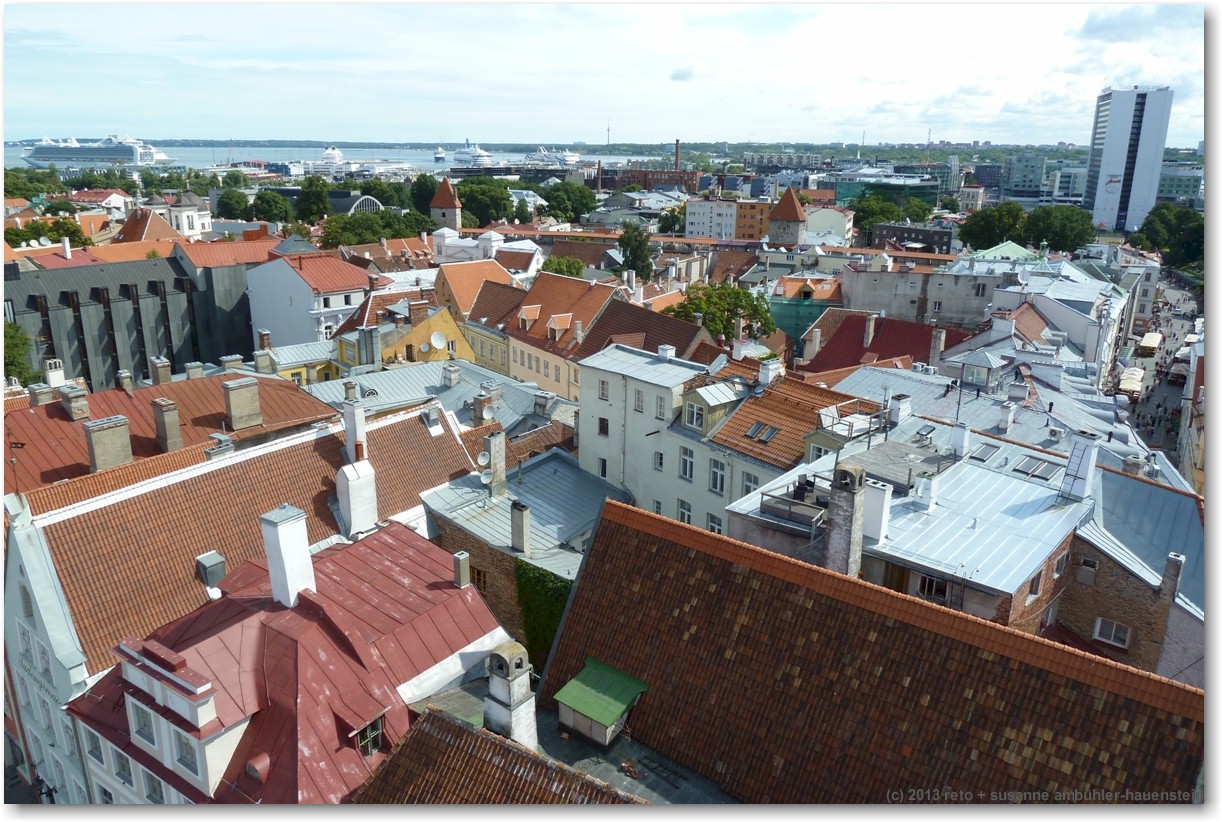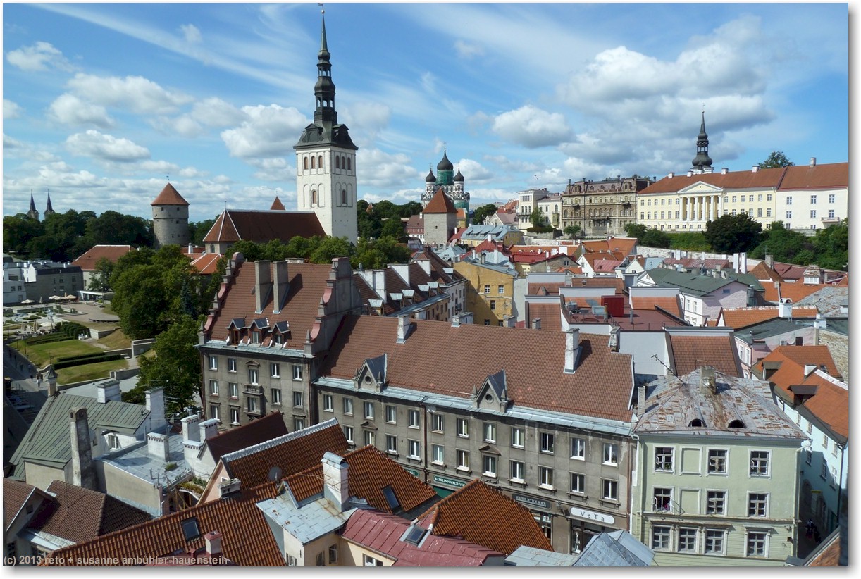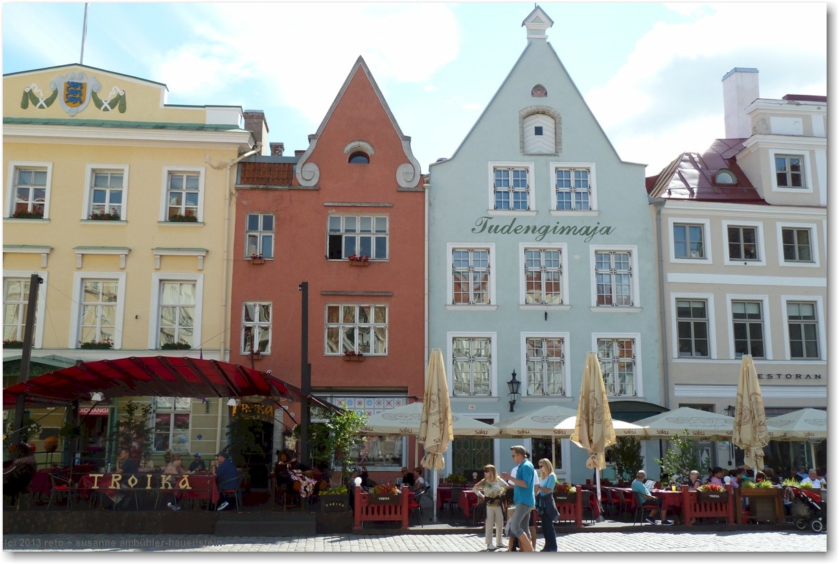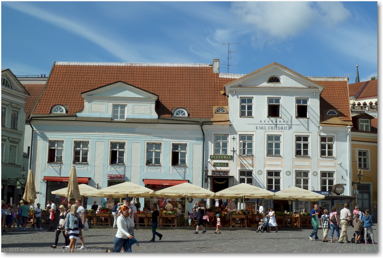 wir empfinden tallinn als eine hübsche, freundliche und übersichtliche stadt. das motto "vergangenheit trifft zukunft" trifft den geist ziemlich gut. allerdings scheint mir, das schwergewicht liegt zur zeit ziemlich stark auf der vergangenheit, zumindest die altstadt ist mehr oder weniger ein lebendes museum. die traditionellen häuser sind wunderschön herausgeputzt, in den läden wird traditionelles handwerk angeboten und das personal in den meisten restaurants trägt traditionelle kleidung. es wäre interessant zu wissen, wie die bevölkerung die sache sieht. ich kann mir gute vorstellen, dass vorallem die jungen leute irgendwann das leben im museum satt haben und sich eine modernere stadt wünschen ...