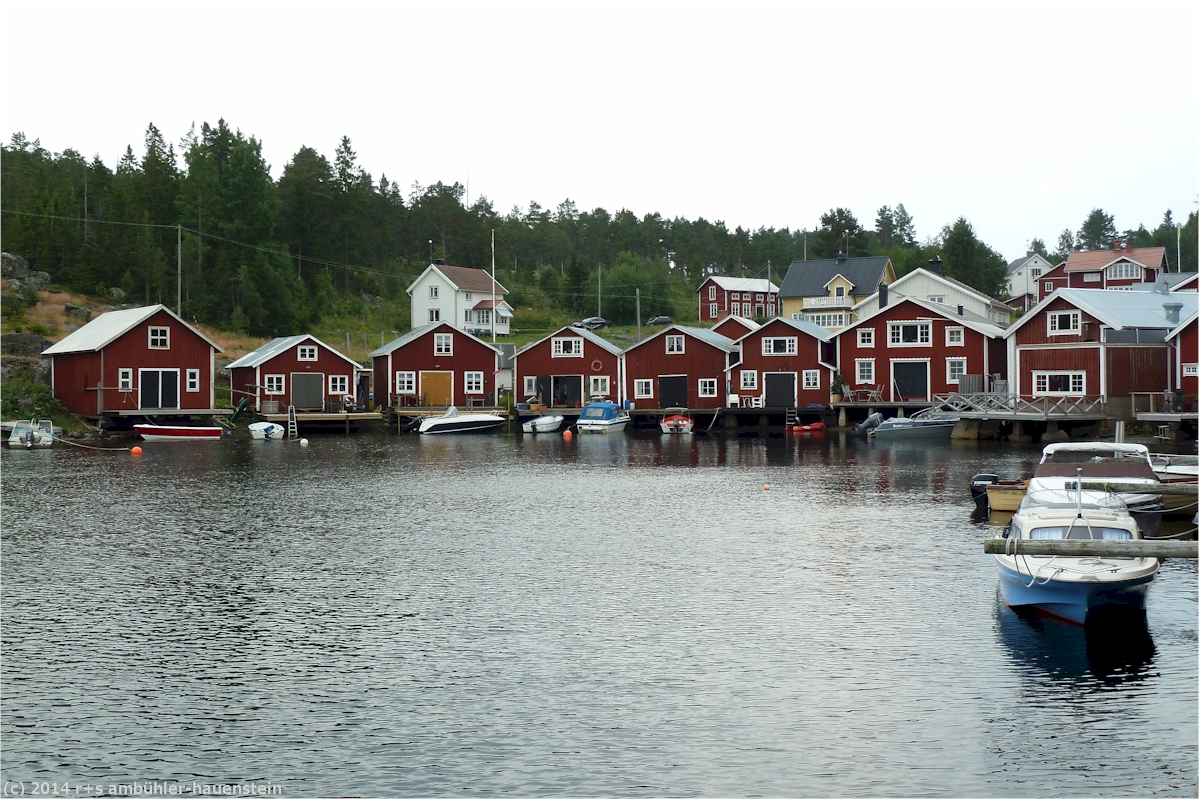 wir ziehen uns um und machen uns dann auf den weg richtung süden. in docksta versuchen wir mehr über eine mögliche bootsfahrt entlang der küste des nationalparkes zu erfahren, aber wir können nichts brauchbares finden. in ullånger machen wir einen weiteren barbezug, dann starten wir zu einer rund 80 km langen rundfahrt durch das gebiet der höga kusten rund um den hauptort nordingrå. dieses wurde vor knapp zehn jahren zum UNO-weltkulturerbe erklärt und geniesst deshalb besonderen schutz. leider verdunkelt sich der himmel wieder und es fallen einige regentropfen. doch bald ist es wieder trocken. in bönhamn machen wir einen halt und spazieren durch das dorf bis zum hafen. die häuser sind teilweise sehr schmuck dekoriert. die stelzenhäuser am hafen erinnern uns an die lofoten ...