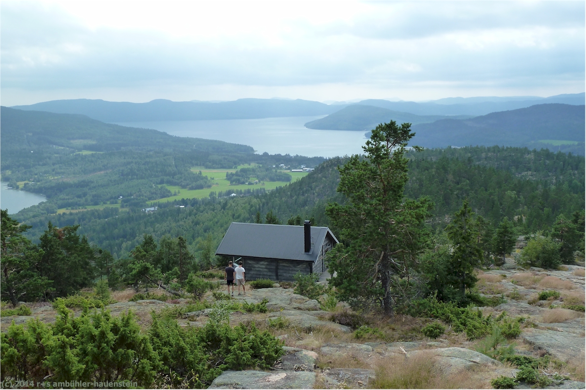 kurz vor 17:30 uhr sind wir wieder beim auto und verlassen den kleinen ort. kaum haben wir die letzten häuser hinter uns, läuft ein fuchs vor uns über die strasse. wenig später sehen wir zwei autos am strassenrand stehen, wir bremsen und erkennen im wald zwei elchkühe, die sich aber rasch von der strasse entfernen. wir fahren durch ein paar weitere kleine nester und vorbei an einzelnen bauernhöfen, die hier allerdings deutlich kleiner sind als im landesinneren. um 18:15 uhr sind wir wieder auf dem campingplatz. susanne startet eine maschine mit schmutziger wäsche, dann baden wir im see. heute gibt es zum znacht "gschwellti". nach dem essen plaudere ich via skype mit hermann, bis die verbindung plötzlich abbricht und sich nicht mehr herstellen lässt (am nächsten tage erfahren wir vom platzwart, dass der accesspoint kaputt gegangen ist). wir gehen abwaschen, dann führe ich die bücher nach. kurz vor mitternacht schlüpfen wir unter die bettdecke.