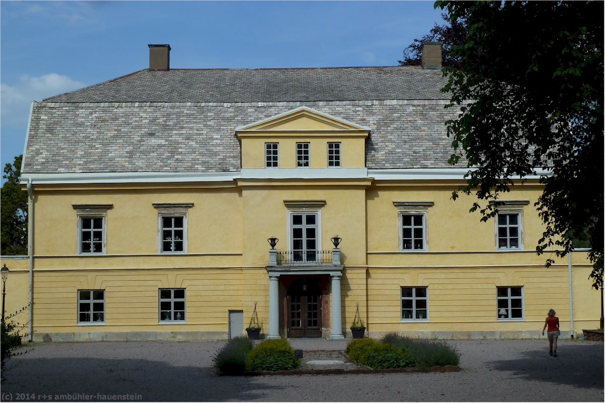 am dorfeingang von hällekis steht ein mächtiges herrenhaus mit einem schönen park. wir spazieren über den vorplatz und werfen einen neugierigen blick durch die fenster.