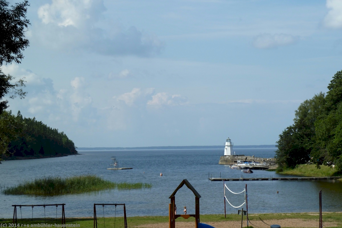 entgegen der wettervorhersage begrüsst uns ein sonniger tag mit fast wolkenlosem himmel. nach dem frühstück suchen wir uns einen weg zum nahen kinnekulle tornet. ein abwechslungsreicher wanderweg führt uns zum aussichtsturm auf dem 340 meter hohen hügel. der blick über die wälder und den riesigen vänern ist überwältigend. der rückweg zum campingplatz via hällekis ist nicht weniger interessant und folgt zuletzt der steilküste am seeufer. wir beschliessen den tag mit einem bad im see, einem köstlichen abendessen und den üblichen "büroarbeiten".
