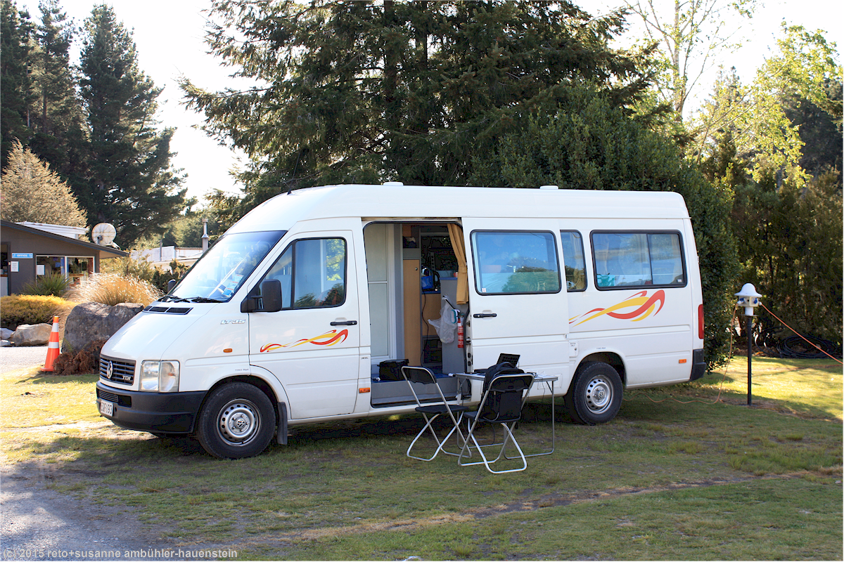 auf dem tongariro holiday park werden wir sehr freundlich empfangen. wir erfahren, dass es in den vergangenen tagen hier heftig geregnet hat, so dass sämtliche touren abgesagt werden mussten. wir hoffen, dass das schöne wetter, welches wir heute mitgebracht haben, noch etwas andauert. morgen möchten wir den "tongariro alpine crossing hike" machen, eine knapp 20 km lange tageswanderung. wenn man mit dem eigenen auto unterwegs ist, gibt es zwei möglichkeiten: entweder parkiert man das auto beim start und nimmt dann einen bus vom ende zurück zum auto, oder man parkiert das auto am ziel und nimmt einen bus zum ausgangspunkt. wir wählen die zweite variante, weil man sich so beliebig viel zeit nehmen kann. das ende der wanderung befindet sich bei einem 7.5 km entfernten parkplatz. wir wollen morgen früh dorthin fahren, ab dort kann man sich von einem bus zum start bringen lassen. wir buchen zwei plätze im ersten der busse - ob die fahrt tatsächlich durchgeführt wird, wird morgen ab 5 uhr bekannt gegeben, dazu muss meine eine telefonnummer anrufen. zur zeit liege die wahrscheinlichkeit bei 50%. dies, weil die wettervorhersage für morgen nicht so gut sei.