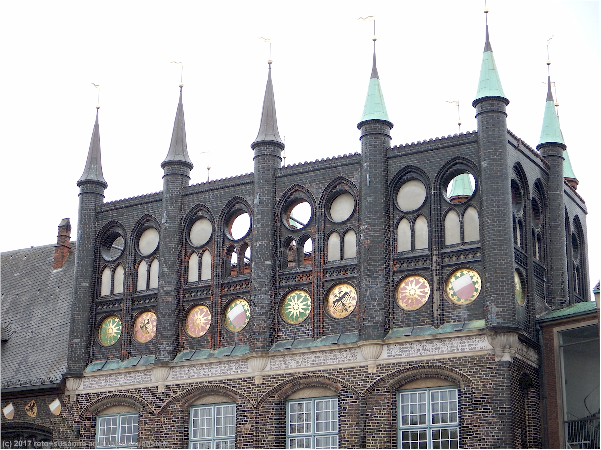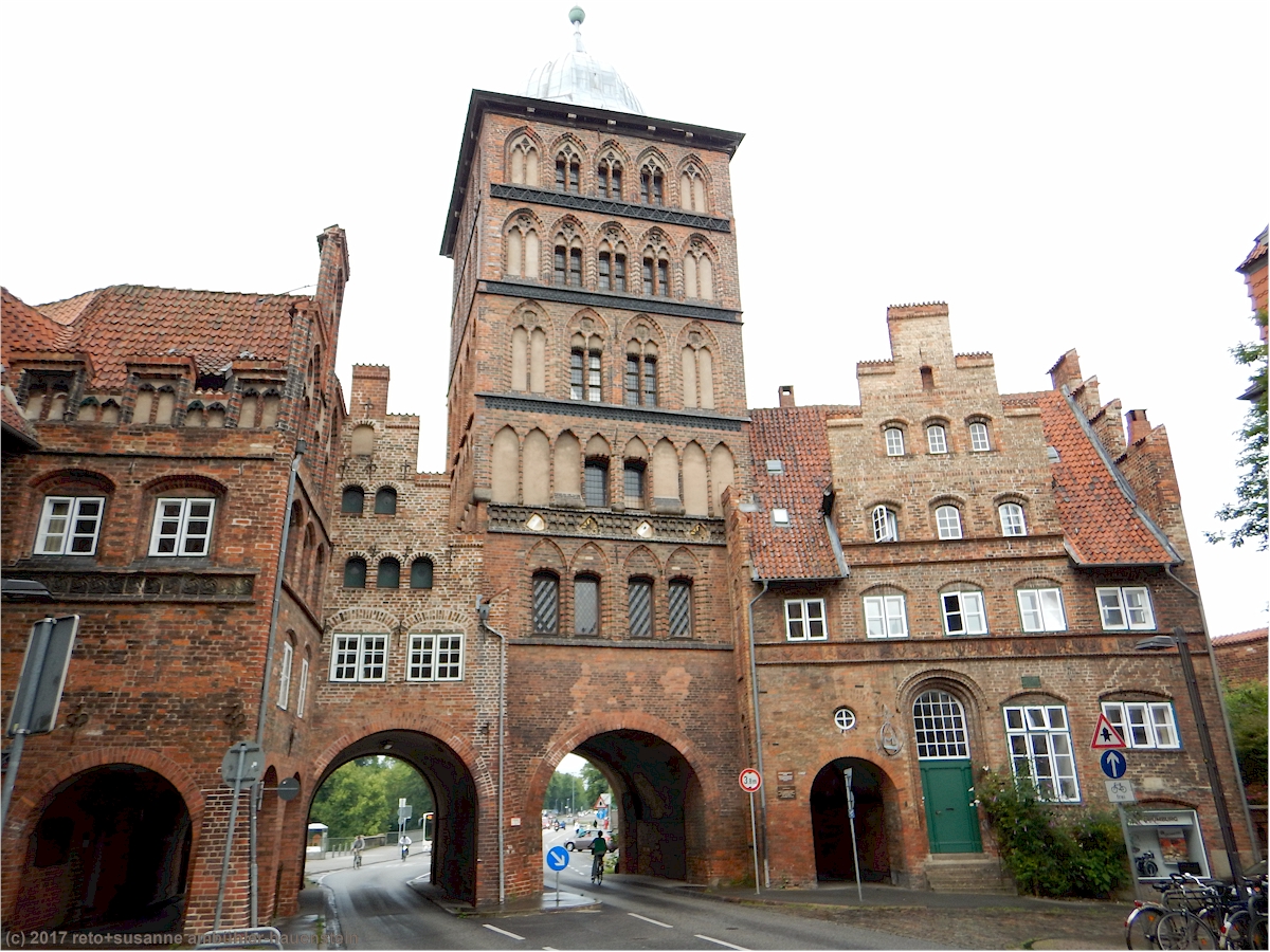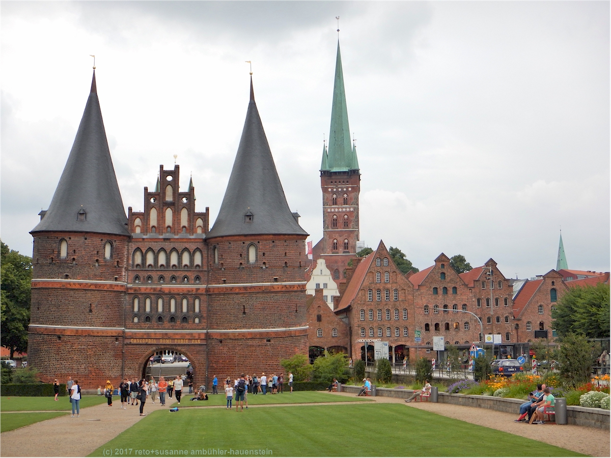 wir verbringen eine erholsame nacht und erwachen gegen 8:30 uhr. nachdem wir uns etwas frisch gemacht haben, sind wir eine halbe stunde später auf der A7 unterwegs richtung norden. nach zwanzig minuten fahrt stoppen wir bei der raststätte hasselberg und geniessen ein kleines frühstück. auf der weiterfahrt staunen wir erneut, wie wenig autos unterwegs sind. einige baustellen bremsen unsere sonst flüssige fahrt, wir stehen aber nie. ab hannover nimmt dann der verkehr stark zu. das wetter ist anfangs bewölkt und kühl, dann wird es zwar wärmer aber auch feuchter. bei der raststätte brunautal essen wir eine kleinigkeit, um 14:30 setzen wir unsere fahrt fort. wir überlegen uns, wo wir die zeit bis zum verlad verbringen wollen, denn einchecken für die fähre von travemünde nach helsinki können wir erst ab 21 uhr, der verlad beginnt üblicherweise gegen 23 uhr. in den vergangenen jahren haben wir den nachmittag jeweils irgendwo westlich von travemünde an der küste verbracht. aber zum einen haben wir die meisten ort inzwischen neustadt und travemünde inzwischen besucht und zum andern ist das wetter heute ziemlich trüb. susanne schlägt deshalb vor, dass wir einen abstecher nach lübeck machen könnten, eine sehr gute idee.