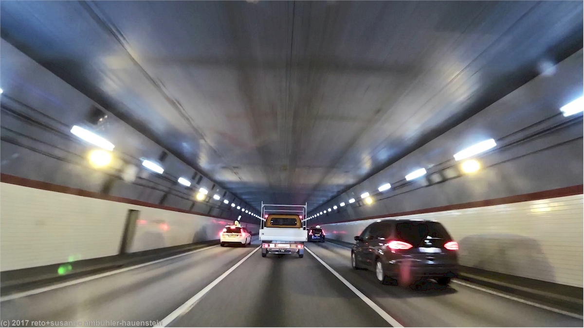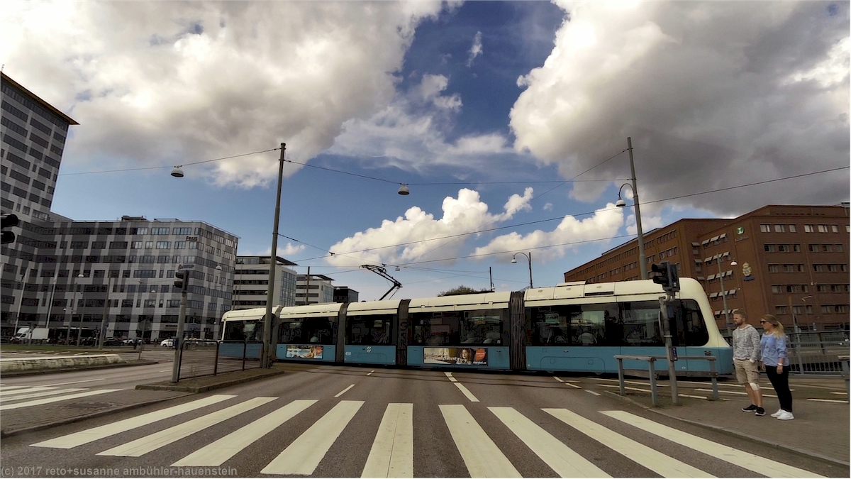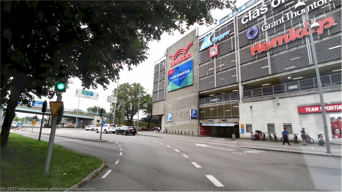 damit haben wir das ländliche schweden definitiv hinter uns. auf der autobahn herrscht reger verkehr mit vielen lastwagen. durch das tingstadstunneln gelangen wir auf die südseite des göta älv. kurz danach verlassen wir die E6 und fahren auf der ullevigatan westwärts richtung stadtzentrum. die letzten stunden vor der abreise an bord der fähre richtung kiel verbringen wir fast jedes jahr in göteborg und wir parkieren stets im einkaufszentrum nordstan. obwohl wir das nun sicher schon weit mehr als zehn mal gemacht haben, ist die anfahrt zum nordstan jedes mal voller überraschungen. immer hat es irgendwo auf dem weg zum einkaufszentrum eine baustelle, so dass wir nie die geplante route fahren können. auch dieses jahr ist es nicht anders. um 12:10 uhr sind wir aber glücklich am ziel. die fahrt durchs parkhaus ist immer wieder ein kleines abenteuer. unser jogi ist 213 cm hoch, die maximale fahrzeughöhe ist am eingang zum parkhaus mit 2.2 meter angegeben, da haben wir nicht viel reserve.