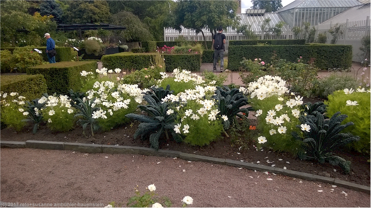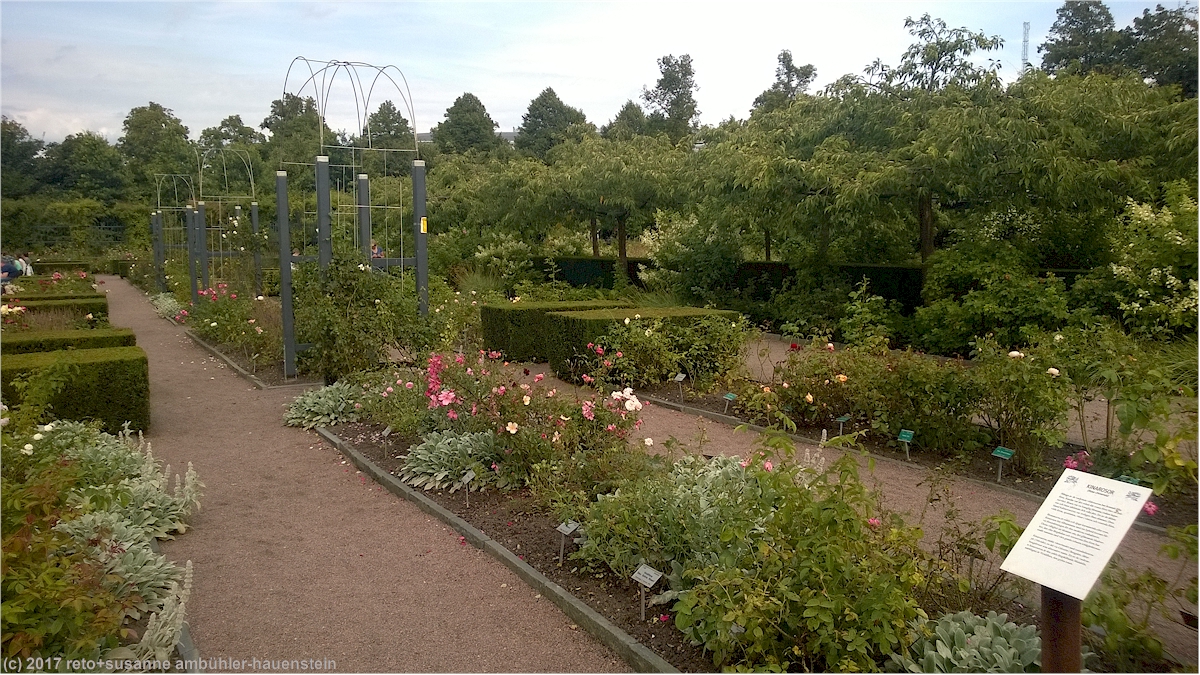 im nordstan besuchen wir erst das lebensmittelgeschäft um die leeren flaschen zurück zu geben, dann spazieren wir durch das uns wohlbekannte stadtzentrum. wir möchten unseren kindern etwas mitbringen und starten unsere shoppingtour bei peak performance, wo wir für katrin einen pullover und mich zwei t-shirt kaufen. anschliessend essen wir eine kleinigkeit und setzen dann unseren einkaufsbummel fort. als wir für alle etwas gefunden haben, kehren wir zum wagen zurück, um die einkaufstüten los zu werden. auf dem spaziergang durch die stadt sind uns die vielen plakate aufgefallen, auf denen für die 400 jahr-feier von göteborg geworben wird. wir folgen den vielen menschen richtung stadtpark, dort ist tatsächlich sehr viel los. überall gibt es stände und verschiedene attraktionen für gross und klein. im rosengarten finden wir ein bisschen abstand vom rummel und geniessen einen kaffee im freien. die wolken am himmel haben sich im laufe des nachmittages verdichtet und ihre farbe verändert sich zusehends von weiss richtung grau.
