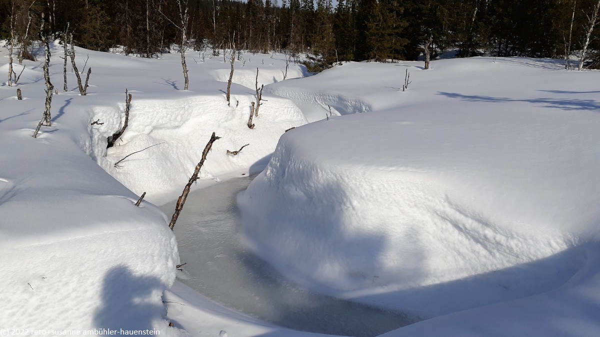 schneebedeckter bach | schutzhütte entlang der loipe |