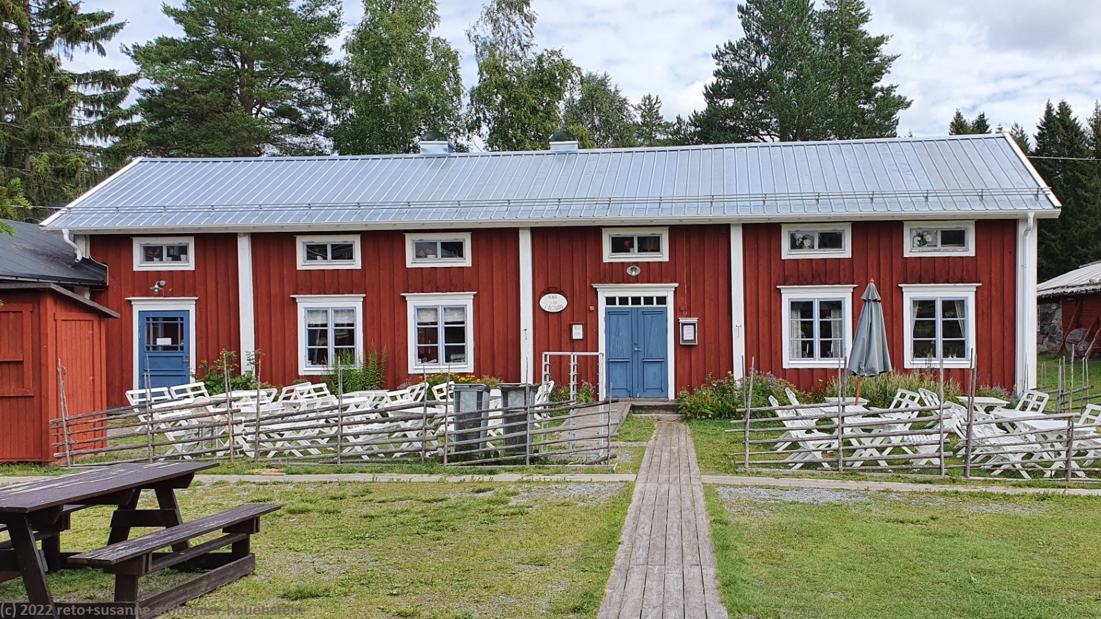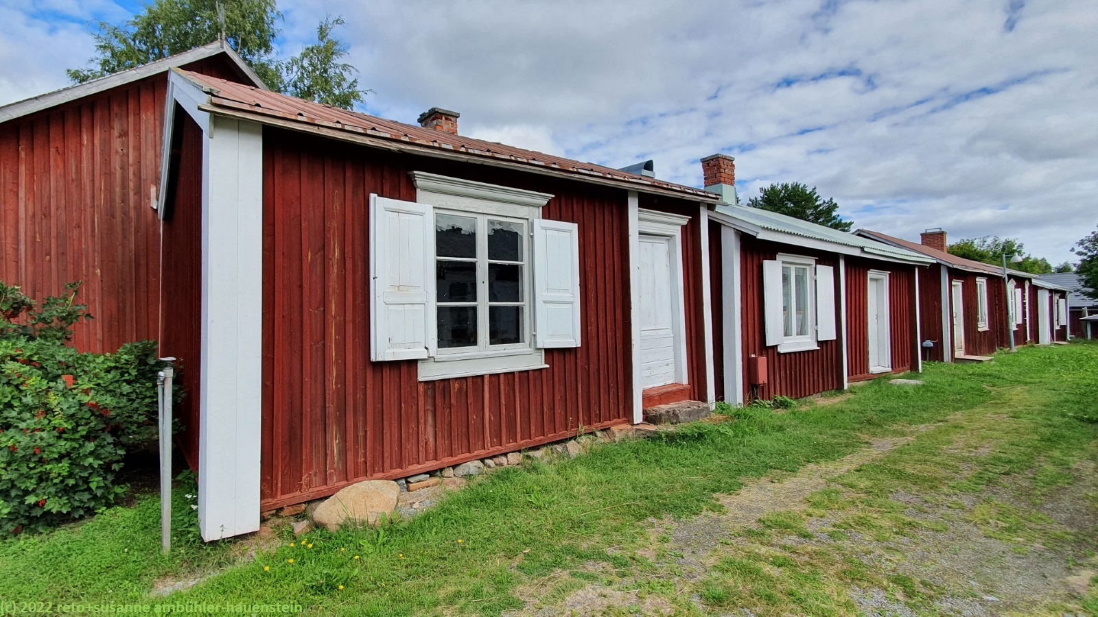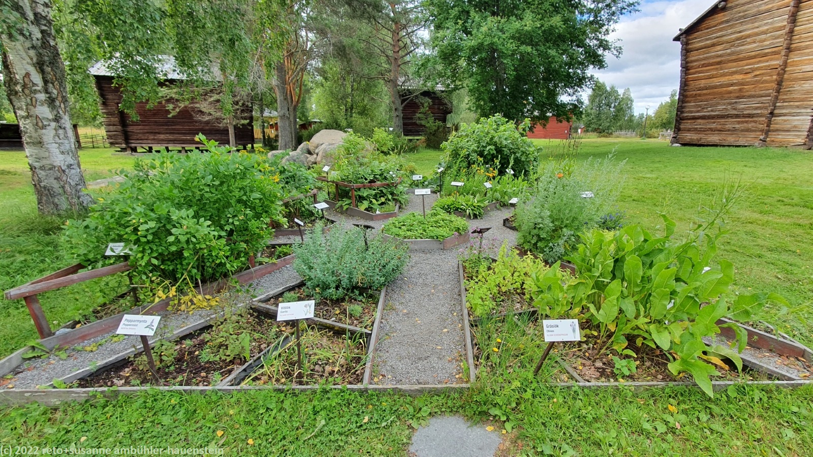 wir schlafen bis gegen 9 uhr. das wetter ist freundlich, wenn auch nach wie vor eher kühl. immerhin sind die wolken nun weiss statt grau und man sieht vielleicht 10% blauen himmel zwischen den wolken. kurz nach 10 uhr machen wir uns auf den weg zum kajakclub luleå, aber wie auf grund unserer gestrigen recherchen auf der website zu befürchten war, können wir hier heute kein kajak mieten. offenbar ist alles geschlossen, auch das tägliche training fällt gemäss einer notiz am anschlagbrett aus. so fahren wir nach gammelstad. hier gibt es zum einen eine alte kirchenstadt und zum anderen ein freilichtmuseum. wir besuchen erst letzteres. neben verschiedenen landwirtschaftlichen gebäuden gibt es einen kleinen laden und ein sehr hübsches cafe. doch fürs mittagessen ist es noch etwas zu früh, darum spazieren wir erst durch die kirchenstadt. wir haben diese schon einmal besucht, siehe tagebuch vom 25-jul-2014. hier gab es im 18. jahrhundert periodische treffen von kirchenvertretern. damit die teilnehmenden übernachten konnten, wurden viele kleine hütten gebaut. später kamen wohl einige grössere dazu, dieses sind auch heute zumindest teilweise noch bewohnt. wenig überraschend gibt es zudem eine stattliche kirche. kurz nach mittag sind wir wieder beim cafe im freiluftmuseum. wir essen erst ein sandwich und anschliessend gibt es kaffee und köstlichen kuchen.