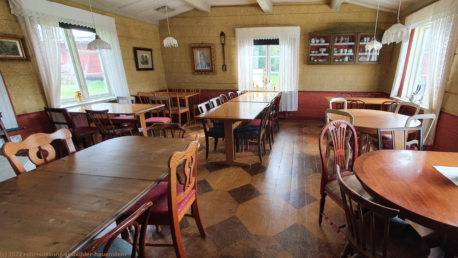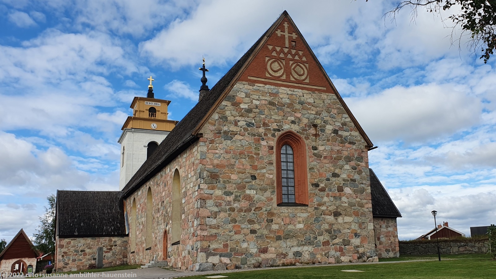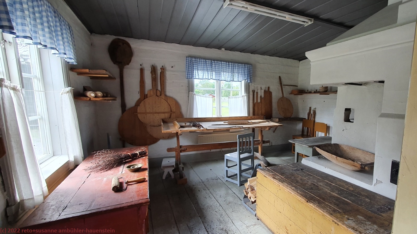 wir schlafen bis gegen 9 uhr. das wetter ist freundlich, wenn auch nach wie vor eher kühl. immerhin sind die wolken nun weiss statt grau und man sieht vielleicht 10% blauen himmel zwischen den wolken. kurz nach 10 uhr machen wir uns auf den weg zum kajakclub luleå, aber wie auf grund unserer gestrigen recherchen auf der website zu befürchten war, können wir hier heute kein kajak mieten. offenbar ist alles geschlossen, auch das tägliche training fällt gemäss einer notiz am anschlagbrett aus. so fahren wir nach gammelstad. hier gibt es zum einen eine alte kirchenstadt und zum anderen ein freilichtmuseum. wir besuchen erst letzteres. neben verschiedenen landwirtschaftlichen gebäuden gibt es einen kleinen laden und ein sehr hübsches cafe. doch fürs mittagessen ist es noch etwas zu früh, darum spazieren wir erst durch die kirchenstadt. wir haben diese schon einmal besucht, siehe tagebuch vom 25-jul-2014. hier gab es im 18. jahrhundert periodische treffen von kirchenvertretern. damit die teilnehmenden übernachten konnten, wurden viele kleine hütten gebaut. später kamen wohl einige grössere dazu, dieses sind auch heute zumindest teilweise noch bewohnt. wenig überraschend gibt es zudem eine stattliche kirche. kurz nach mittag sind wir wieder beim cafe im freiluftmuseum. wir essen erst ein sandwich und anschliessend gibt es kaffee und köstlichen kuchen.