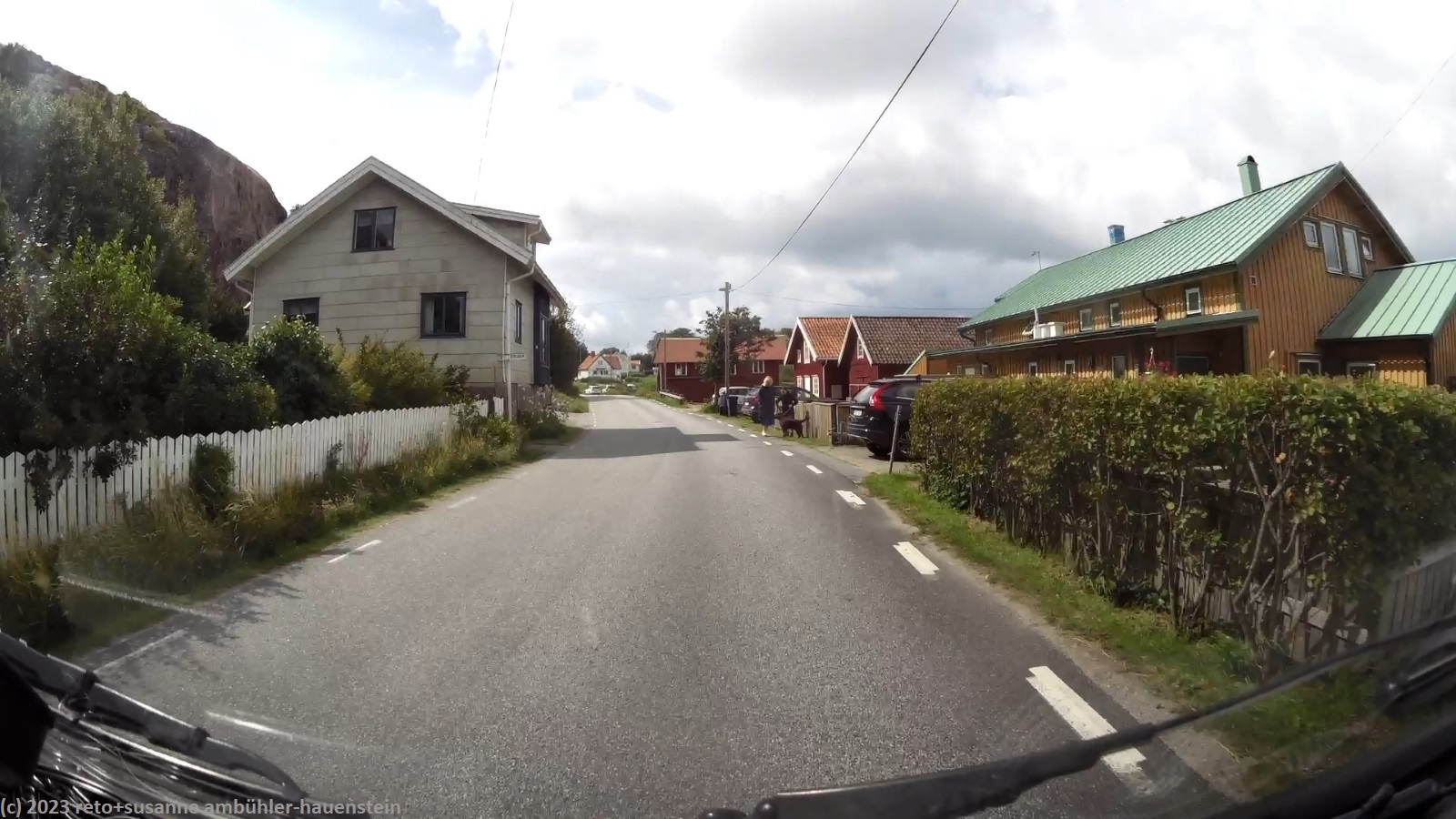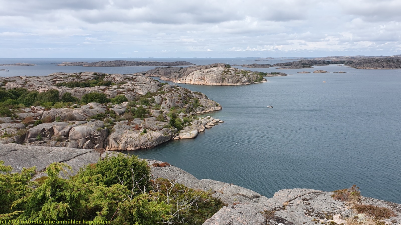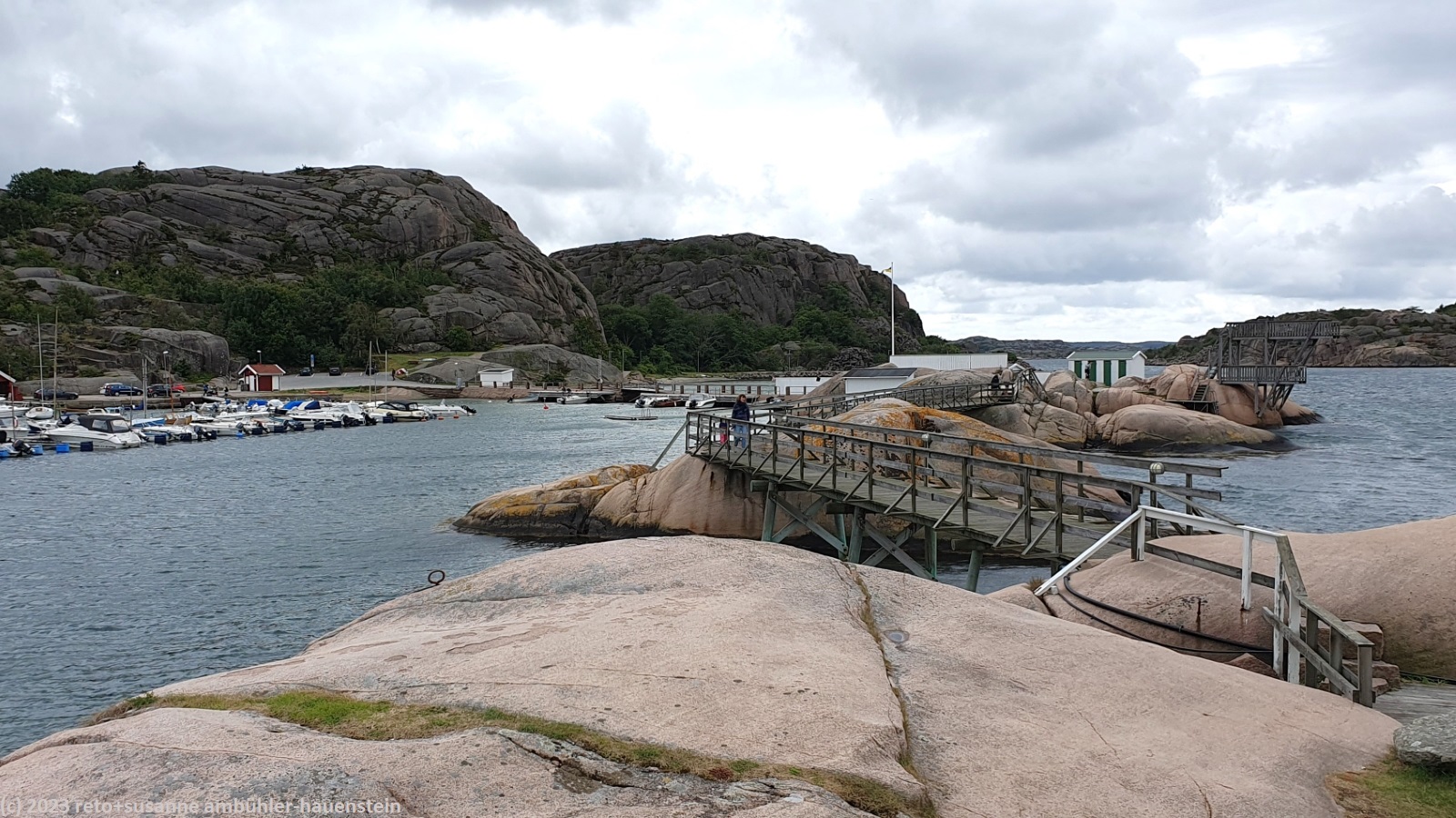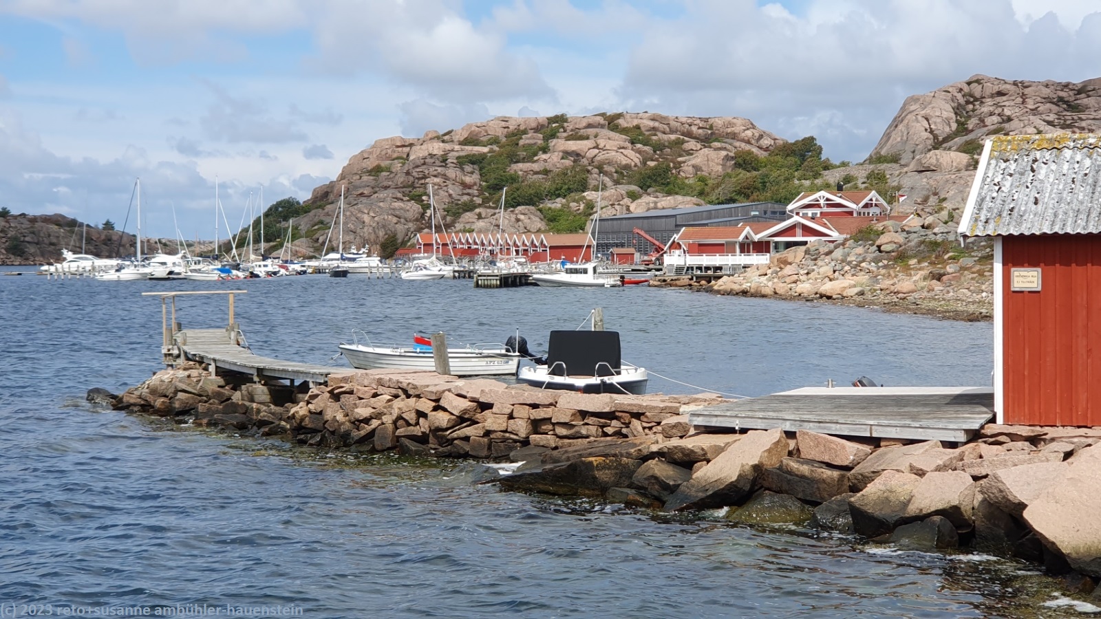 nachdem die anreise nach schweden sowie sämtliche buchungen bis hier wunderbar geklappt haben, gönnen wir uns heute einen etwas ruhigeren tag. wir schlafen bis gegen 9:30 uhr. der himmel ist bewölkt, es bläst ein kräftiger, böiger wind. der plan, der sommerhitze zu entfliehen, ist zumindest für die ersten tage, aufgegangen. kurz vor 11 uhr machen wir uns auf den weg nach hamburgsund. beim hafen reservieren wir für morgen ein doppelkajak. gemäss wettervorhersage soll es morgen ein sonniger tag werden, hoffentlich wird dann das auch so. nun folgen wir der strasse südwärts, vorbei an unserem campingplatz bis auf die höhe von heestrand. susanne möchte im ort parkieren um dann etwas der küste entlang zu wandern, aber hier kann man nirgends parkieren. nach einer rundfahrt gelangen wir wieder auf die landstrasse und fahren auf dieser erneut südwärts, um unser glück in bovallstrand zu versuchen. hier sieht es vielversprechender aus, aber wir fahren vorerst noch 4 km weiter, denn da soll es gemäss navi eine tankstelle haben. wir brauchen dringend benzin und die tankstellen sind in dieser gegend sehr dünn gesät. die tankstelle existiert tatsächlich und so können wir uns mit vollem tank auf den rückweg bis bovallstrand machen. beim ICA kaufen wir etwas zu trinken, dann stellen wir unseren jogi auf den langzeitparkplatz an der hauptstrasse.