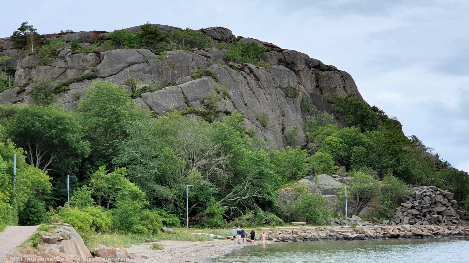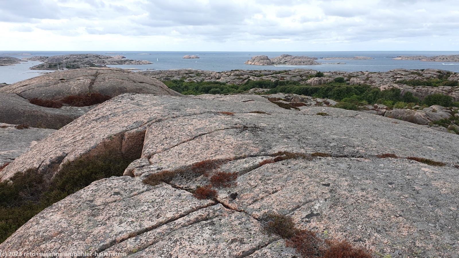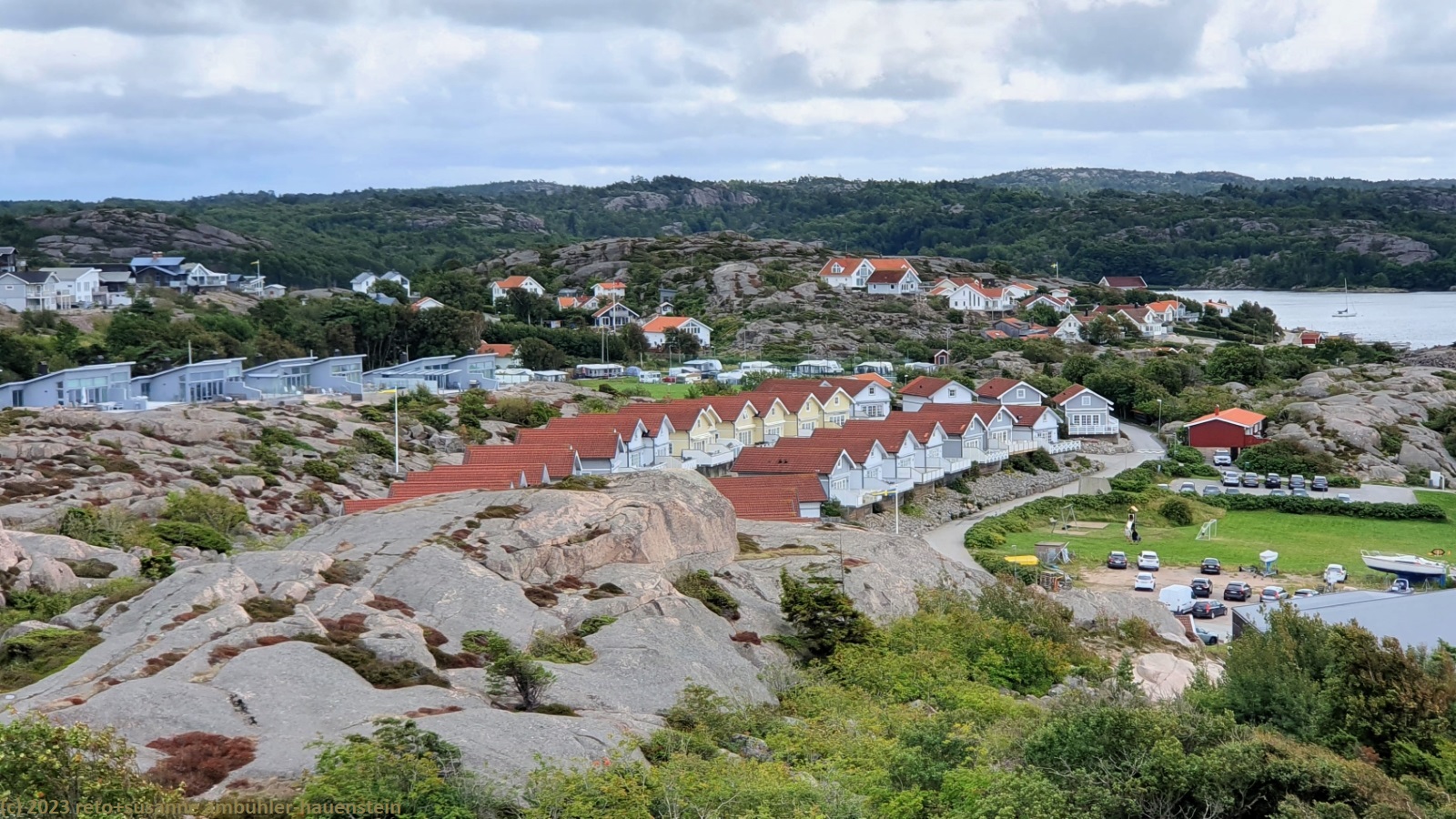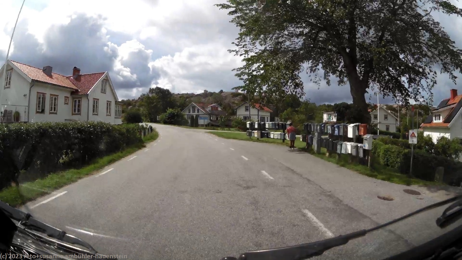 nachdem die anreise nach schweden sowie sämtliche buchungen bis hier wunderbar geklappt haben, gönnen wir uns heute einen etwas ruhigeren tag. wir schlafen bis gegen 9:30 uhr. der himmel ist bewölkt, es bläst ein kräftiger, böiger wind. der plan, der sommerhitze zu entfliehen, ist zumindest für die ersten tage, aufgegangen. kurz vor 11 uhr machen wir uns auf den weg nach hamburgsund. beim hafen reservieren wir für morgen ein doppelkajak. gemäss wettervorhersage soll es morgen ein sonniger tag werden, hoffentlich wird dann das auch so. nun folgen wir der strasse südwärts, vorbei an unserem campingplatz bis auf die höhe von heestrand. susanne möchte im ort parkieren um dann etwas der küste entlang zu wandern, aber hier kann man nirgends parkieren. nach einer rundfahrt gelangen wir wieder auf die landstrasse und fahren auf dieser erneut südwärts, um unser glück in bovallstrand zu versuchen. hier sieht es vielversprechender aus, aber wir fahren vorerst noch 4 km weiter, denn da soll es gemäss navi eine tankstelle haben. wir brauchen dringend benzin und die tankstellen sind in dieser gegend sehr dünn gesät. die tankstelle existiert tatsächlich und so können wir uns mit vollem tank auf den rückweg bis bovallstrand machen. beim ICA kaufen wir etwas zu trinken, dann stellen wir unseren jogi auf den langzeitparkplatz an der hauptstrasse.