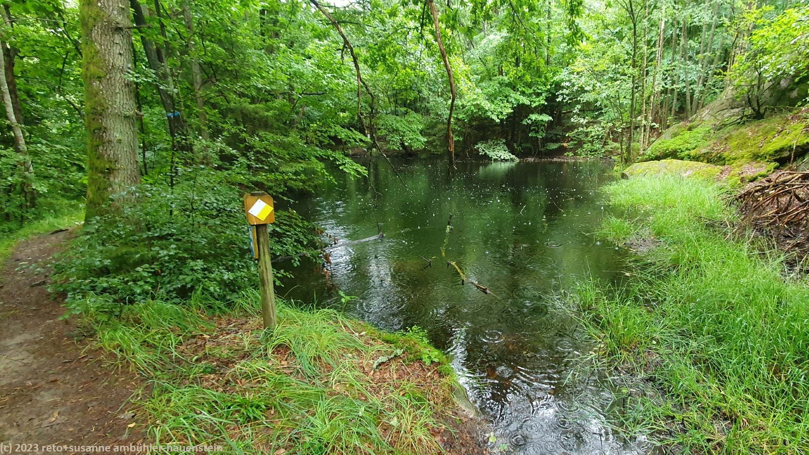 | wanderweg und waldhaus bei hunnebostrand | teich im wald |