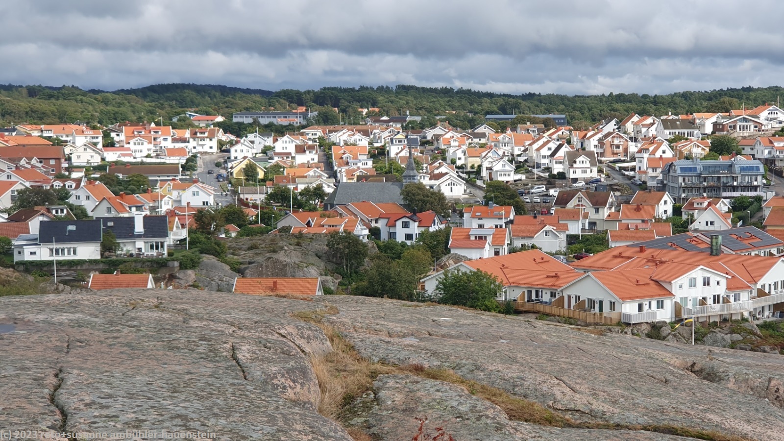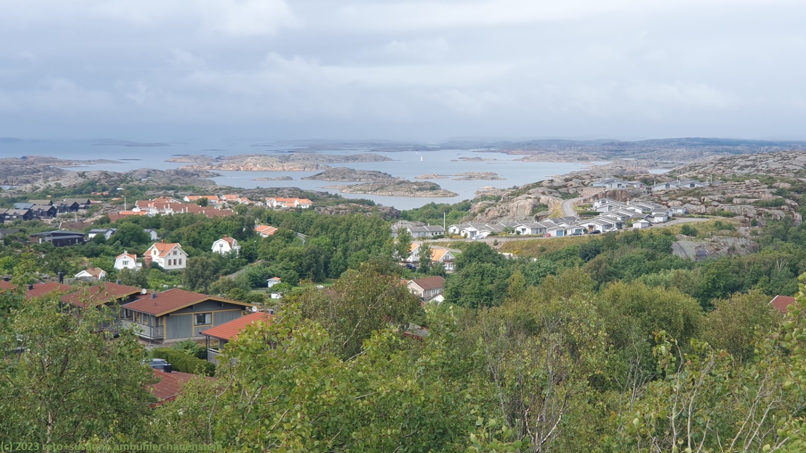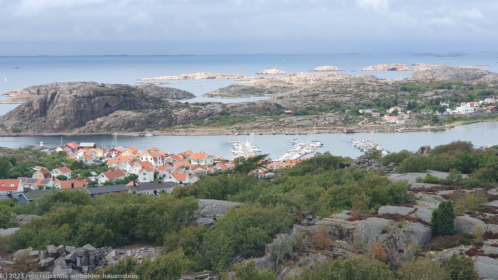 | blick vom nordre hoge berg auf hunnebostrand | bucht mit gasthafen |